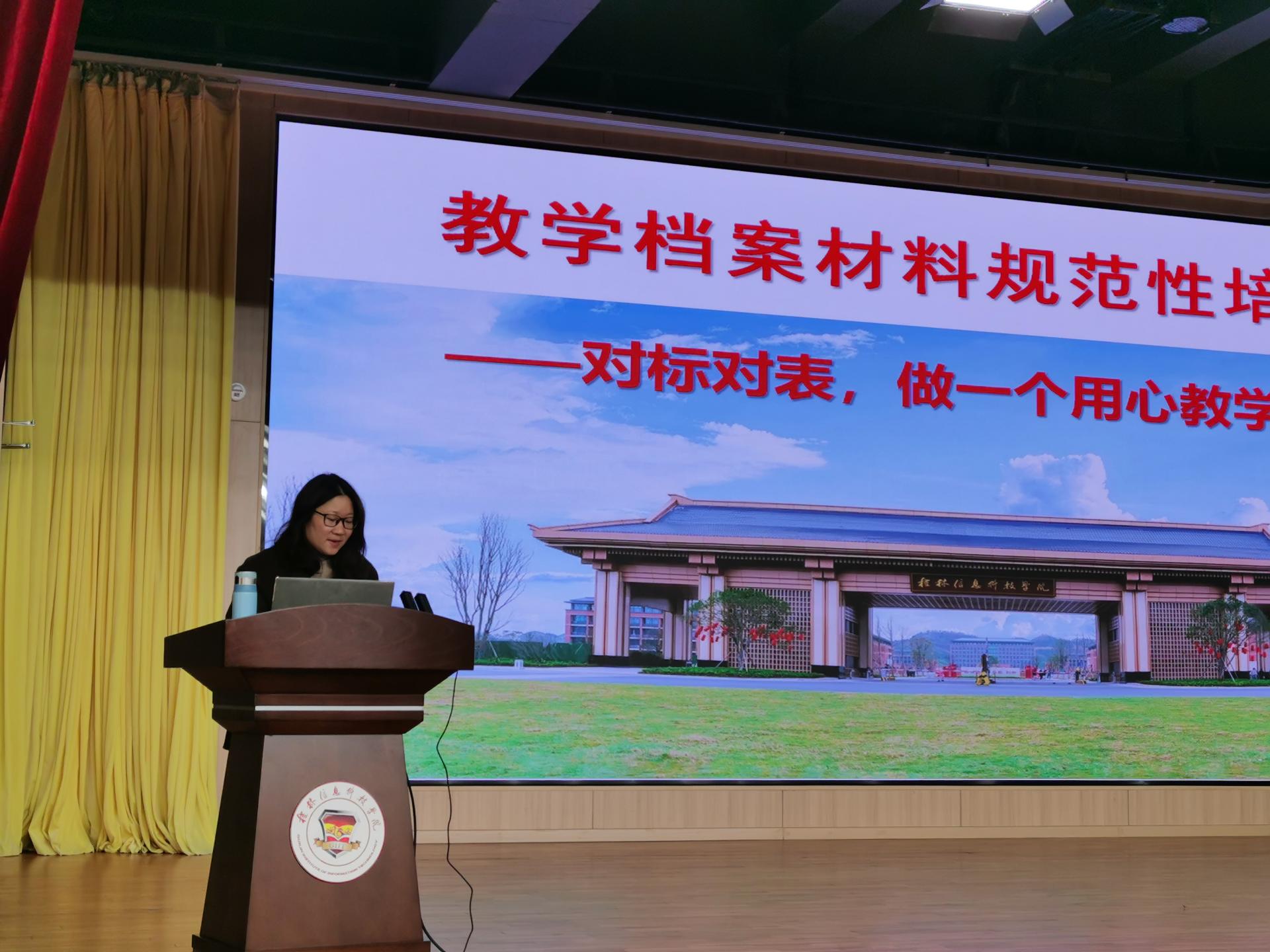 会议由陈玲萍副校长主持。她强调,全体参会人员需深刻理解并切实执行培训内容,要举一反三,全面整改各类教学档案材料,确保教学工作的高质量完成。陈副校长就下一步工作进行了细致部署,要求各教学单位根据会议提出的整改建议,制定切实可行的实施计划,确保教学档案材料的规范性和整齐性,保障教学工作的有序开展。