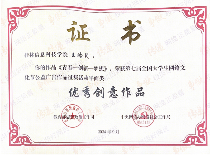 第七届“全国大学生网络文化节”和“全国高校网络教育优秀作品推选展示活动”以“争做校园好网民,汇聚网络正能量,挺膺担当建新功”为主题,设置优秀推广作品奖、优秀展播作品奖、优秀推荐作品奖、优秀入围作品奖等奖项及获奖等次,旨在活跃校园网络空间生态,全面提升网络素养,推进网络文明建设,活动共征集到来自全国范围内5万余件作品。自2023年9月活动启动以来,党委宣传部负责比赛作品的征集和评选,广泛动员,积极营造良好宣传氛围,推动广大师生积极参与网络文化作品创作生产,共征集到作品50余件。经作品申报、校级评选、择优推荐等环节,beat365官网向第九届广西高校大学生网络文化节和网络教育优秀作品推选展示活动推荐优秀作品36件,其中14件成果进入全国遴选。
