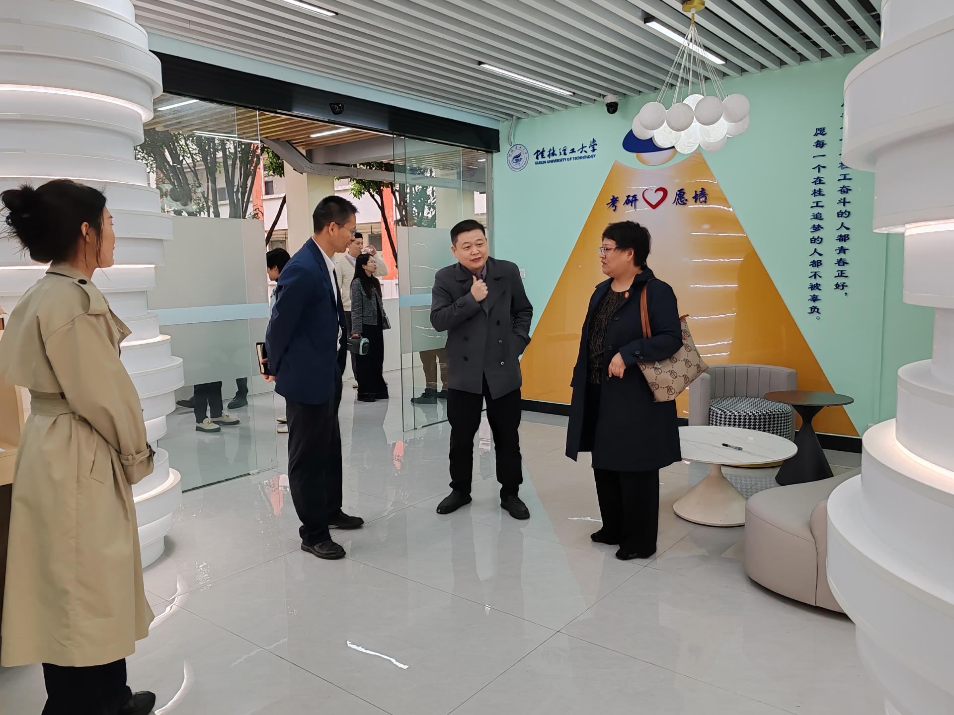 为更好地推进社区建设和深化校友工作,4月8日上午,学校纪委书记、校长助理、学生发展与服务中心主任周璇带队前往桂林理工大学参观交流“一站式”学生社区建设和校友工作,得到了桂林理工大学学工部部长冯广辉的热情接待。双方在雁山校区明园“一站式”学生社区考研规划指导中心召开座谈会。beat365在线唯一官网基建与资产管理处、后勤服务处、学生发展与服务中心等部门的领导及老师共同参与了本次交流学习活动。