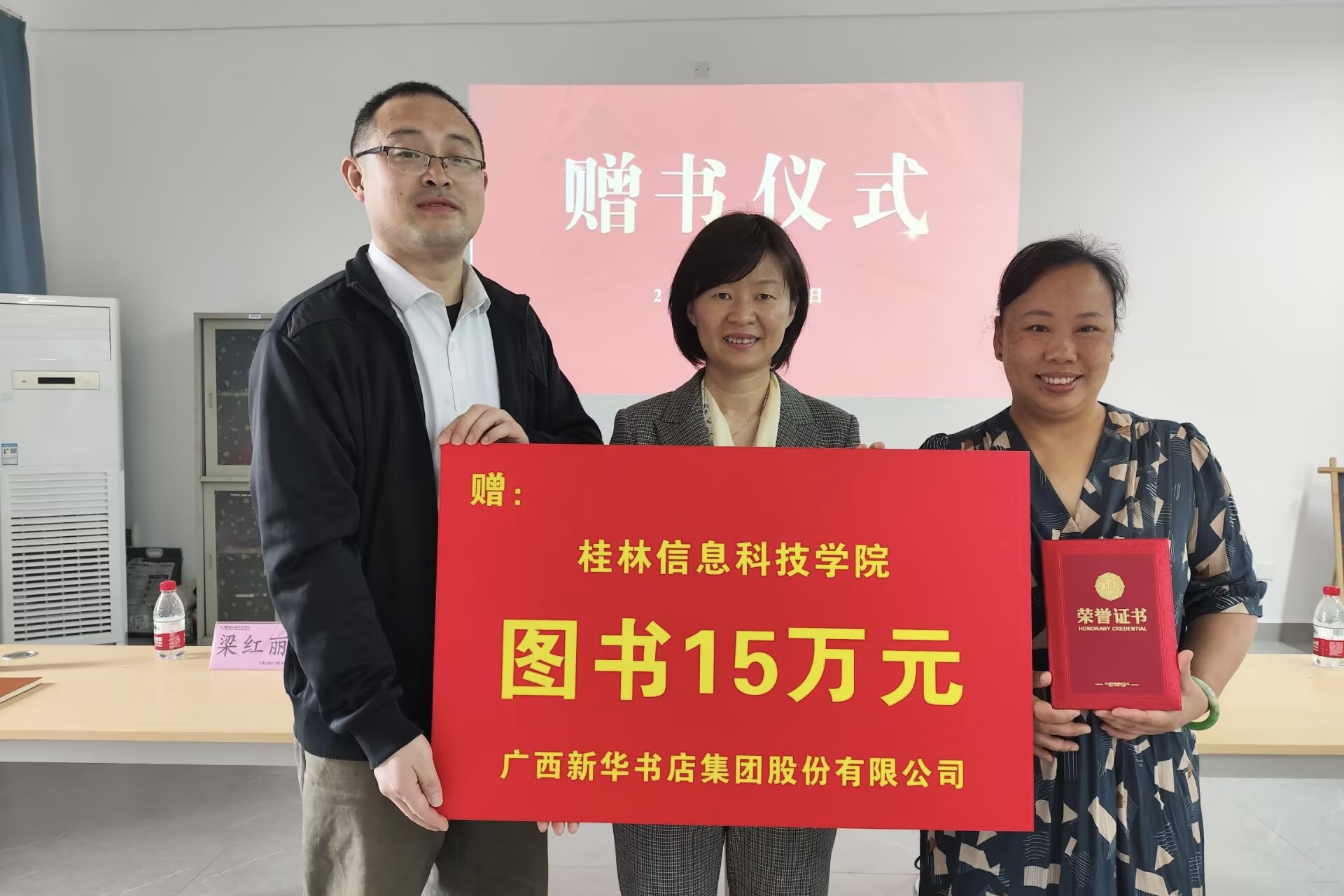 在庆祝第30个“世界读书日”之际,4月23日上午,广西新华书店集团股份有限公司向beat365官网捐赠2400余册珍贵图书,图书捐赠仪式暨阅读分享活动在知行楼621室举行,广西新华书店集团股份有限公司销售经理陈青萍、学校图书馆馆长申琍、教务处副处长张锟以及创意设计学院师生代表60余人参加了活动。