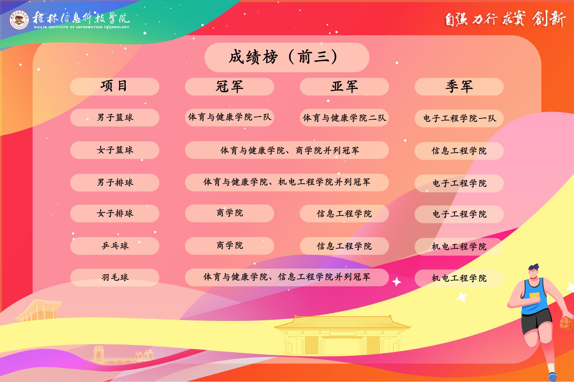 (冠军:体育与健康学院、信息工程学院;季军:机电工程学院)