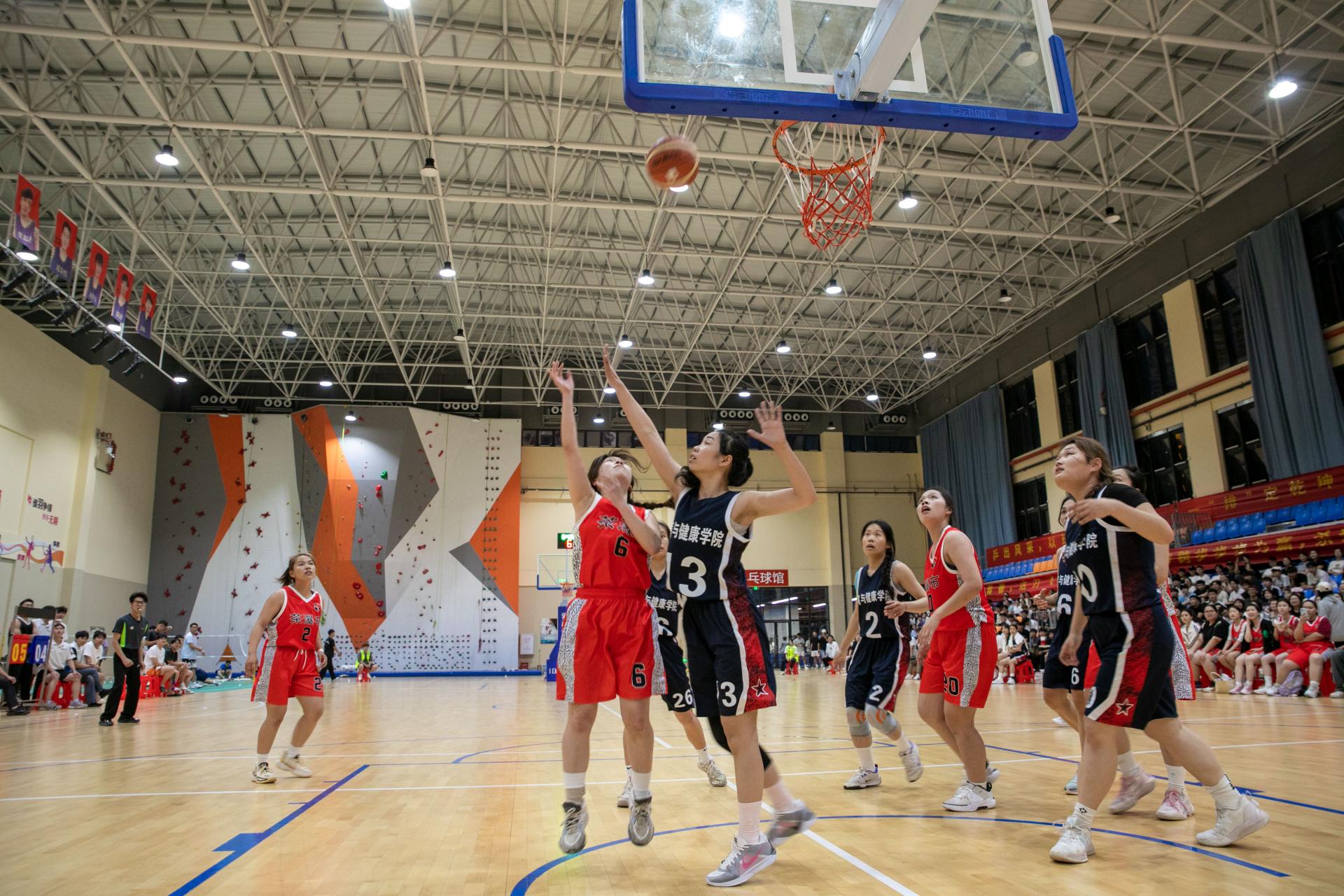 随后,女子篮球决赛激情上演,对阵双方为商学院与体育与健康学院。赛场上,双方队员全情投入,精准投篮、默契配合、凌厉进攻、顽强防守,引得观众阵阵喝彩,加油声此起彼伏。
