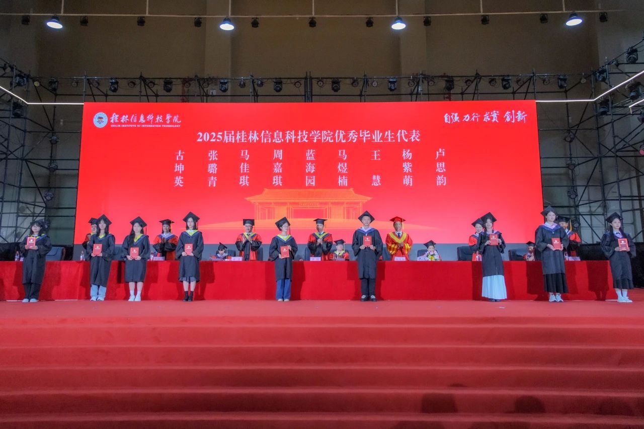 副校长李桂华宣读2025届广西优秀毕业生、学校优秀毕业生及毕业生干部表彰决定。学校领导分别为2025届广西优秀毕业生、学校优秀毕业生、学校优秀毕业生干部颁发了荣誉证书。