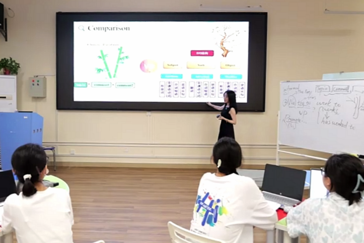 在此次比赛中,团队教师凭借扎实的英语语言功底与深厚的专业素养,充分彰显了“语言能力为基、批判思维为要、人文素养为魂、创新能力为翼、家国情怀为本”的五位一体教学理念。团队通过精心的教学构思与活动设计,现场演示了权威时政文本的翻译方法与技巧,课堂气氛活跃。与此同时,在教学环节中,团队有机融入课程思政元素,为课堂注入深刻的内涵;巧妙融合AI互动技术,使课堂充满了科技感与趣味性。