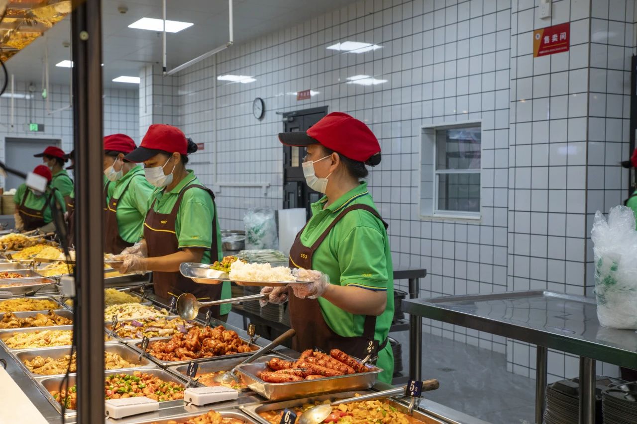 食堂里,阿姨们忙碌在蒸汽与锅勺之间,一盘盘热菜热饭,是他们为远方学子准备的第一份“家常味”。