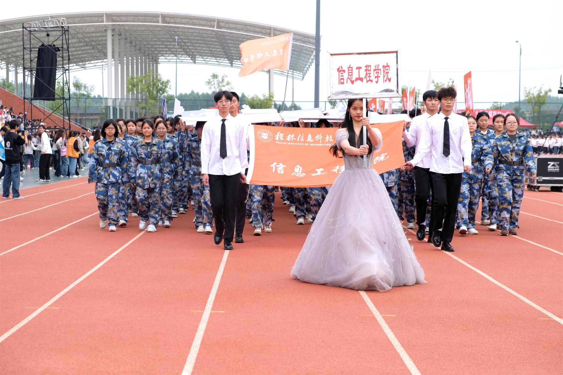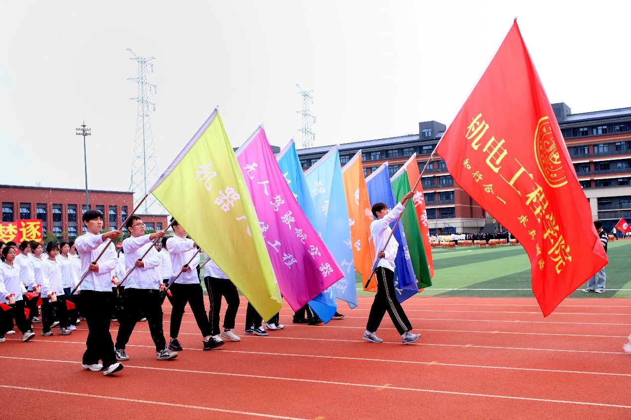 随后,国旗护卫队、信息工程学院、电子工程学院等师生代表方队依次登场,意气风发地走过主席台接受检阅,充分展现了学校各学科专业特色与师生们的良好的精神风貌。