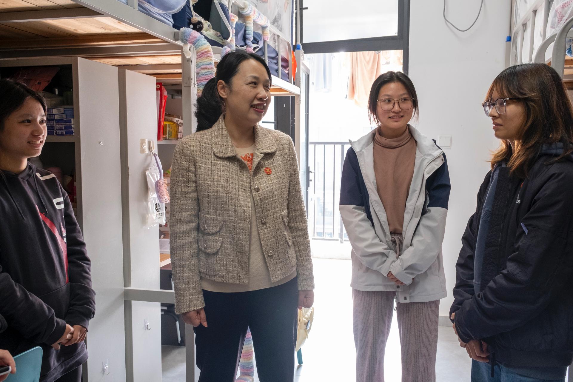 为深入贯彻落实立德树人根本任务,持续推进资助育人工作走深走实,将关怀传递至学生成长一线,12月9日,学校校长解庆林,副校长罗捷,党委副书记李飞,纪委书记、校长助理周璇代表学校深入学生社区走访慰问,为有需要的学生送上了御寒的暖心棉被。