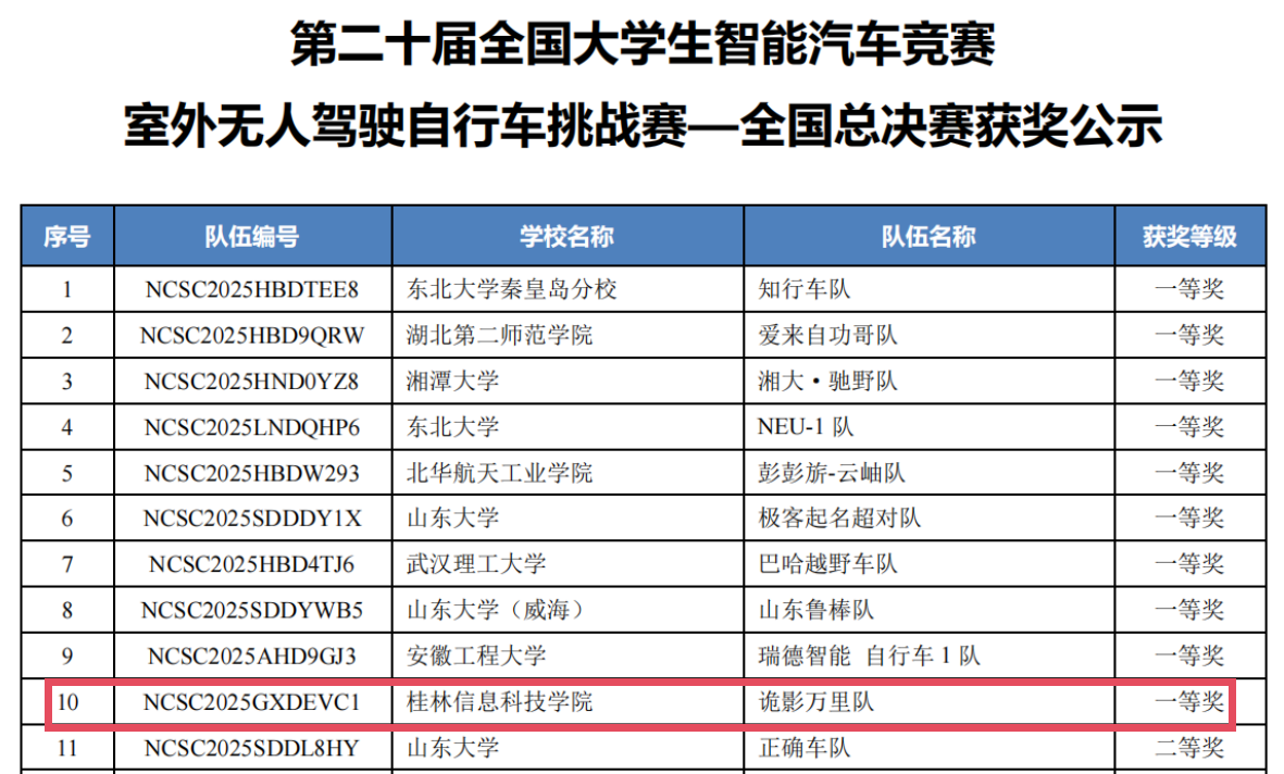 全国大学生智能汽车竞赛是教育部认定的A类全国性赛事,已成为国内高校科技创新和工程实践能力展示的核心平台。第二十届全国大学生智能汽车竞赛自启动以来,覆盖全国30余个省市自治区、近500所高校,累计参赛学生超33万人次,呈现出“高手云集、竞争白热化”的态势。beat365官网信息工程学院学子组成的诡影智能车团队双线告捷,蝉联室外无人驾驶自行车挑战赛全国一等奖,勇夺室外智能驾驶挑战赛全国一等奖并首夺全国第2名,展现了过硬的技术实力与协作精神。