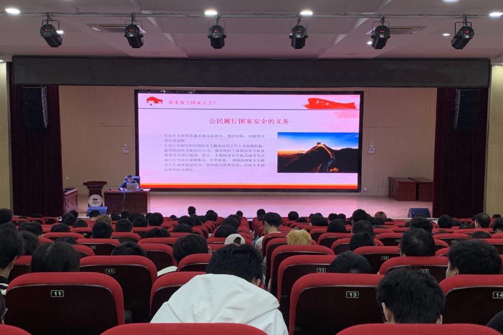 为增强我院学生国家安全意识,自觉维护国家安全。4月15日,电子工程学院于51206报告厅开展“全民国家安全教育日”送法进校园活动,活动由学院分团委副书记朱济亨主持,桂林市公安局七星分局国内安全保卫大队副大队长诸葛明月担任主讲人,七星区人民检察院第一检察部主任徐启良、未成年人检察工作办公室主任石钧文、未成年人检察工作办公室副主任周雅萍出席本次活动,我院各年级团员共150人参加本次活动。