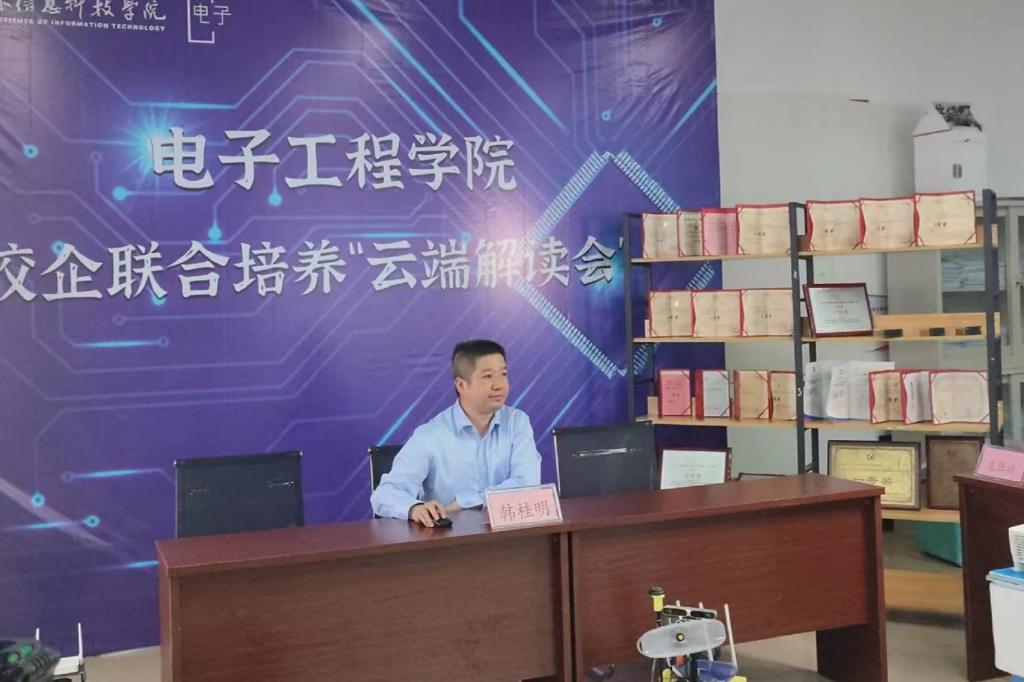 为推动学生培养、就业创业、校企合作等各项工作深入展开,4月28日晚,电子工程学院通过学院官方微信公众号平台以线上直播的方式召开校企联合培养“云端解读会”,本次会议由学院院长韩桂明主讲,我院2020级辅导员范恒祯、贾旺旺与2020级全体学生家长共同参会。