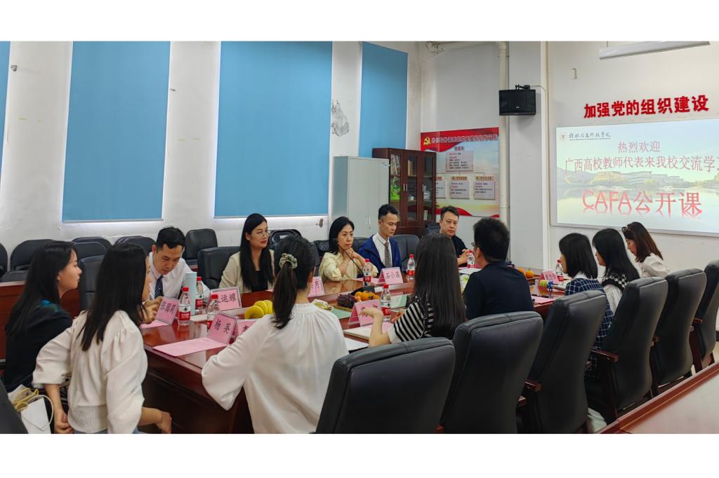 5月16日,CAFA中国国际交流处处长石小溪、广西民族大学相思湖学院商学院党委副书记韦洪月、柳州城市职业技术学院农运耀老师等一行九人到beat365官网交流,共同聆听了石小溪老师的葡萄酒公开课,课后老师们就beat365官网开设葡萄酒课程及与CAFA合作的经验做了进一步交流。外贸与外语学院副院长赖安、院长助理陆晓等教师出席交流会。