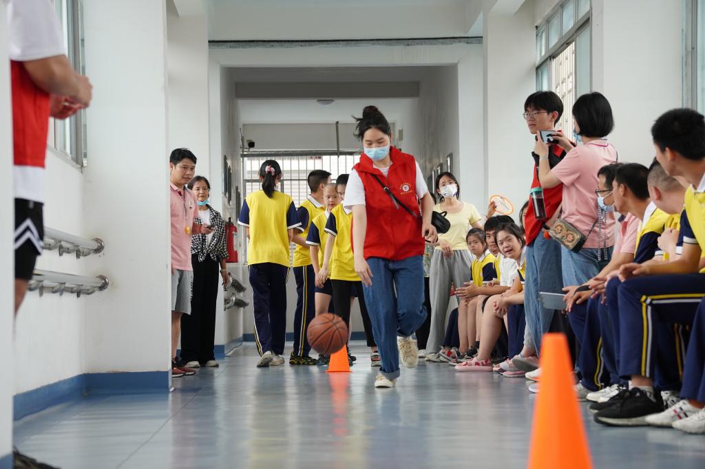 活动现场,志愿者分组跟随班主任前往各班了解学生情况,根据他们的身心特性和实际需要,优化志愿服务方式。随后,志愿者们与各班学生一同参加了融合趣味运动会,大小朋友齐心协力,现场气氛热烈活跃。