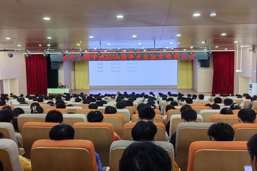 为进一步增强学生职业规划意识,树立正确的就业观念、认清就业形势、把握就业机会。9月14日,电子工程学院召开2024届毕业生就业动员大会。会议由学院党委书记黄云鹏主讲,2020级辅导员贾旺旺、周郁、陈志林以及2024届毕业生参加会议。