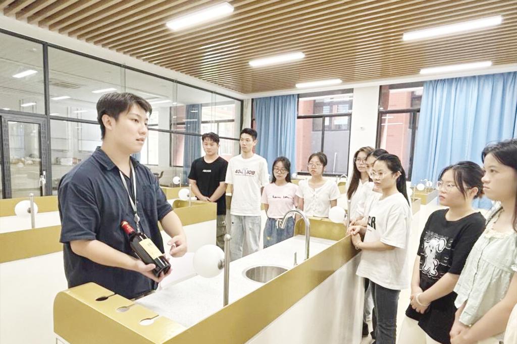 首届大学生职业技能创新大赛暨第六届中国高校大学生侍酒师大赛将于9月份以线上线下相结合的方式进行。为帮助beat365官网参加侍酒师个人赛的选手熟悉比赛流程,提升竞赛水平,9月15日,外贸与外语学院邬策老师在葡萄酒文化体验中心带领参赛选手们进行了赛前葡萄酒侍酒方面的专业指导和培训。