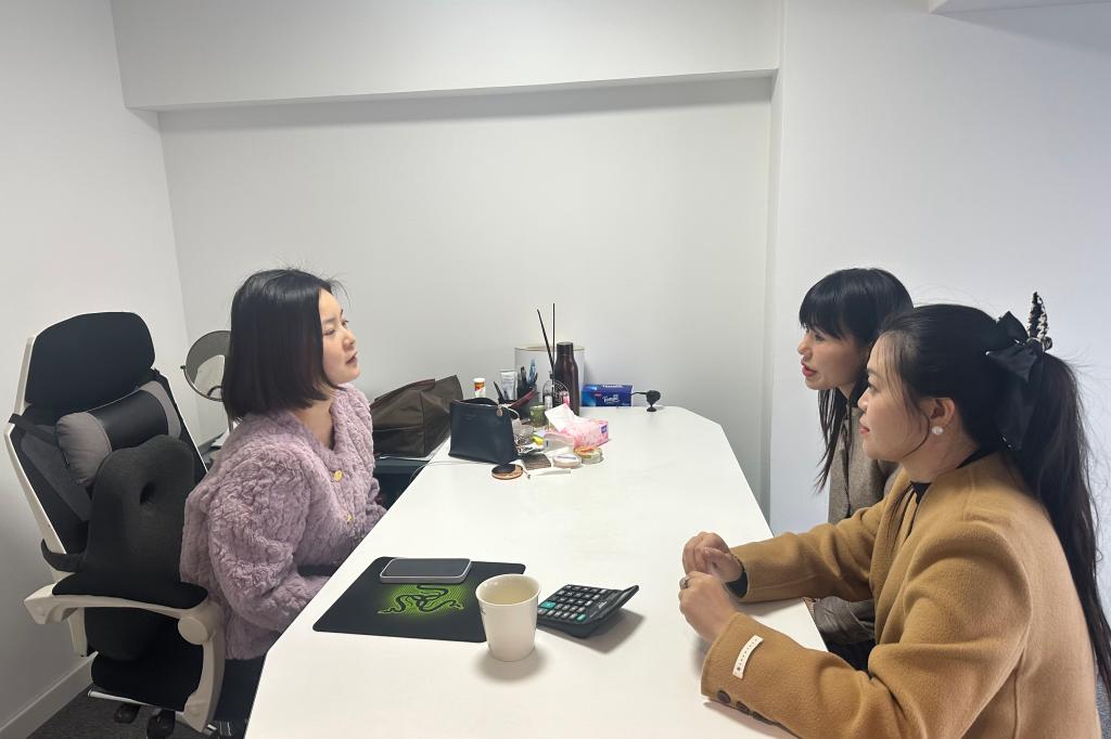 黄晓瑜一行在上海赋鸣文化传播有限公司麦总经理的陪同下,参观了企业的各类主营产品,了解了公司的发展历程。上海赋鸣文化传播有限公司是一家从事文化艺术交流策划,设计广告,制作广告等业务的设计公司。随后,校企双方就本科课程设置、专业技能培养、学生就业创业、专业发展特色等方面展开深入讨论,麦总经理表达出了较高的热情,希望和学校开展深入的合作,愿意为学生提供专业学习机会,搭建实践平台,双方就学生实践基地、学生实验技术指导达成共识。