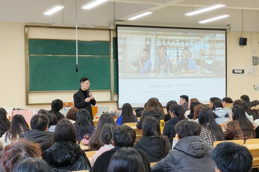 讲座中,张其桦女士从自身从事酒店行业的收获与成长出发,带领学生领略品牌酒店的魅力,并结合学生的专业学习、就业方向对酒店的基础岗位和管理岗位等进行讲解。林嘉欣先生详细介绍了朗廷酒店的独特文化和福利待遇。管凯嵩先生通过与学生们的有趣互动,为学生们赠送了纪念礼品。最后,张其桦女士提到,酒店管理行业前景广阔,充满机遇但也挑战不断,需要入行的实习生和毕业生具备扎实的专业知识和技能、良好的沟通能力、创新能力和团队合作能力。