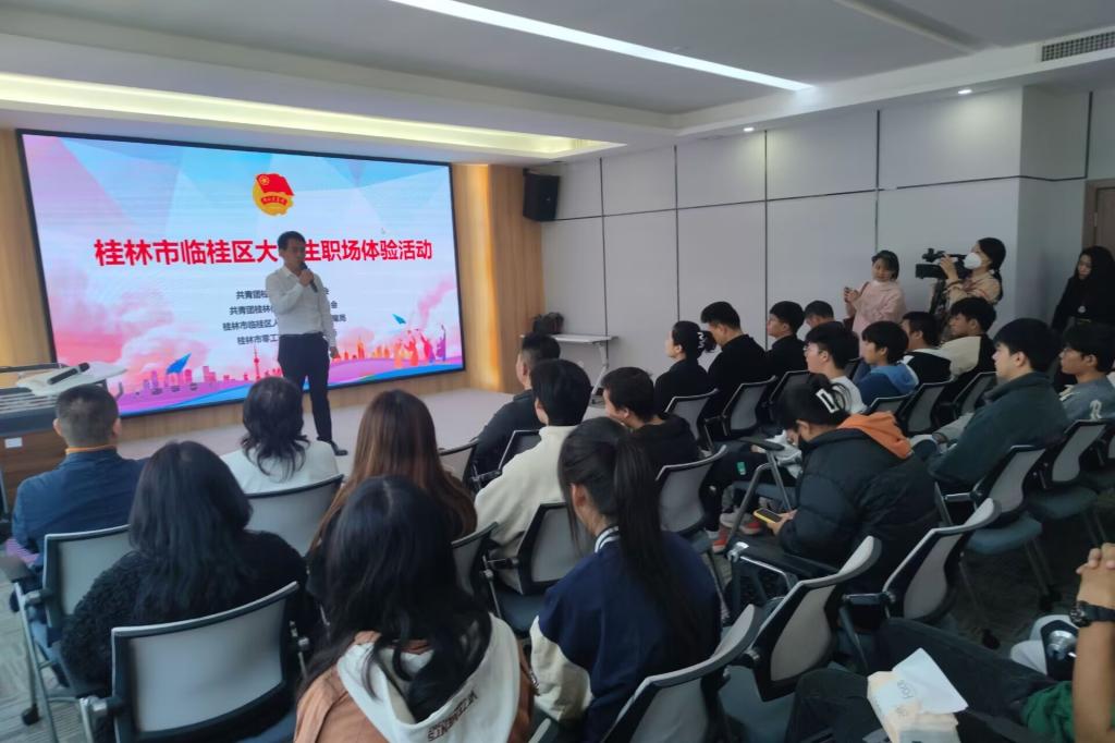 最后,共青团桂林市临桂区委员会书记陈望对活动进行了总结,他指出,此次大学生职场体验活动的举办,不仅让同学们拓宽了视野又增长了见识,对自身专业发展前景有了进一步的了解,获得了理论联系实际相结合的宝贵经验,也为学校、政府、企业搭建了一个良好的沟通交流平台,为更好的服务同学们“留桂就业”和地方企业做大做强提供了强有力的智力支撑,使同学们对临桂区有了更加清晰、全面的认识。