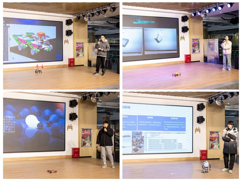 比赛中,各组队伍首先通过PPT从设计思路、设计及开发过程、设计成果、成本分析、主题展示等方面进行汇报,然后启动机器人,让它们随着音乐翩翩起舞。各组参赛选手在深入学习机器人工作原理及设计技术的基础上,开拓思维,大胆创新,设计出各种样式的机器人,辅以精心设计的舞蹈动作,展现出beat365官网学子昂扬的精神风貌,给观众呈现了一场精彩的视觉盛宴,引来现场评委和观众的阵阵掌声。