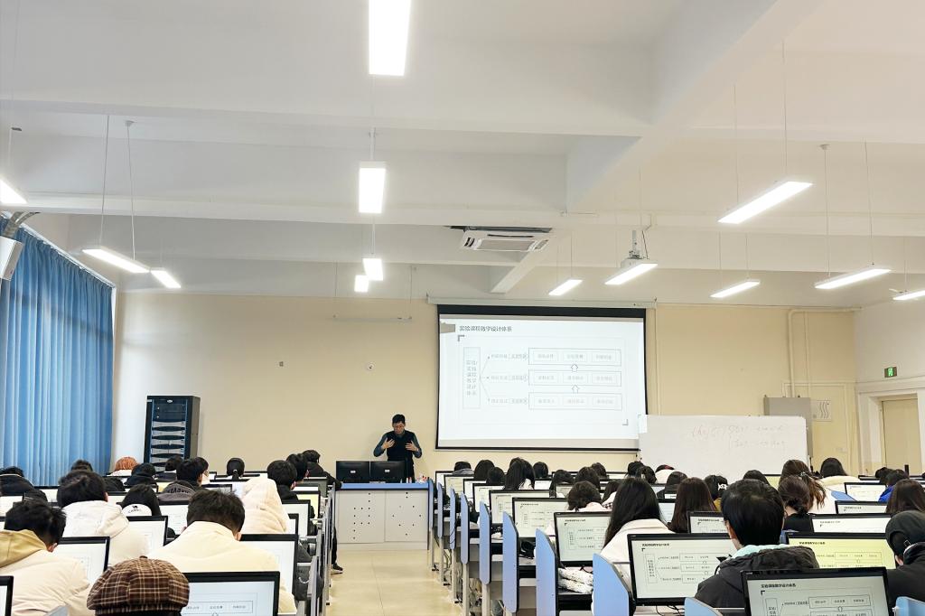 李晓义教授在F209教室以“基于数字化的旅游实验教学改革与创新”为主题,围绕经管类专业的实验教学痛点展开,引起教师们对于实验教学中心的发展路径与创新的思考,介绍了南开大学数字化实验教学的建设成效,并结合现有数字化实验教学模块,提出“轻体验、重创作、轻资产、重效果”的教学理念。