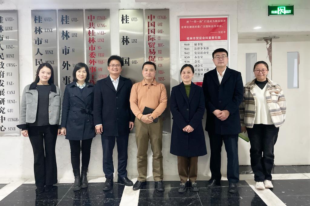 3月22日上午,外贸与外语学院副院长赖安、党总支书记李刚、副院长陆晓和商务英语教研室主任李靖航一行四人走访桂林贸易促进委员会(桂林国际商会),就校企合作、校地服务等合作与贸促会交流。桂林贸促会会长陈立高、副会长卢毅等参加了此次交流会。