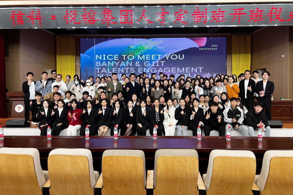 会议由外贸与外语学院副院长赖安主持。会上,副院长赖安首先介绍了到会的悦榕集团领导团队,向同学们说明了悦榕人才定制培养班成立背景、育人模式、岗位设置等情况,并对企业管理团队的到来表示由衷的感谢。