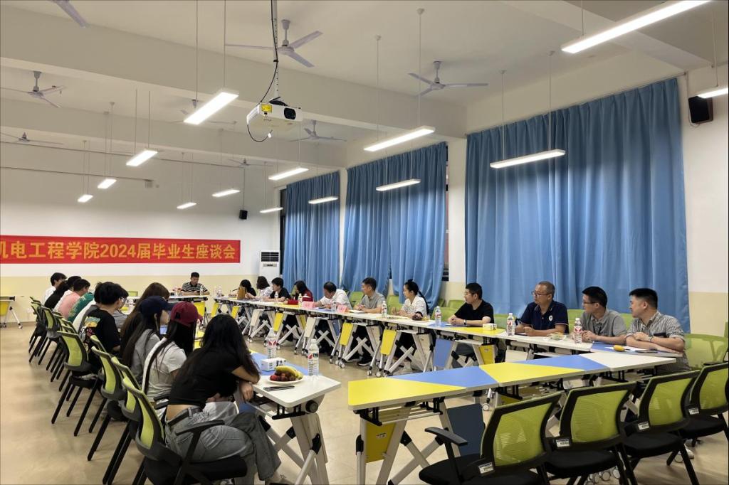 为落实立德树人根本任务,提高育人实效,倾听毕业生的心声及对学院发展的意见,6月14日中午,机电工程学院在C103开展2024届毕业生座谈会,学院党委书记文超、副院长冯翠云、全体教研室主任、全体学院办公室工作人员、毕业班辅导员及毕业生代表参加座谈会。
