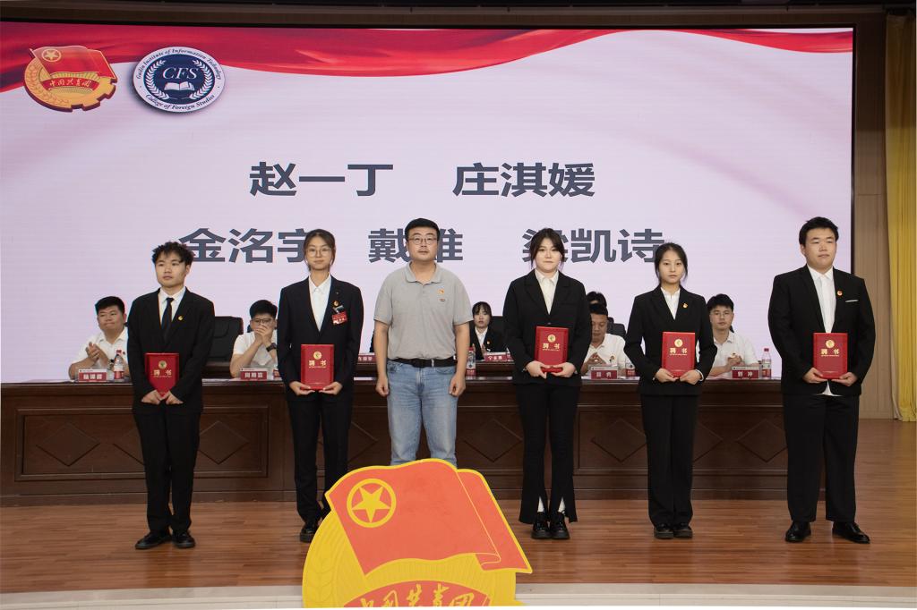 外贸与外语学院副院长、党总支书记李刚为上一届团委委员颁发聘书