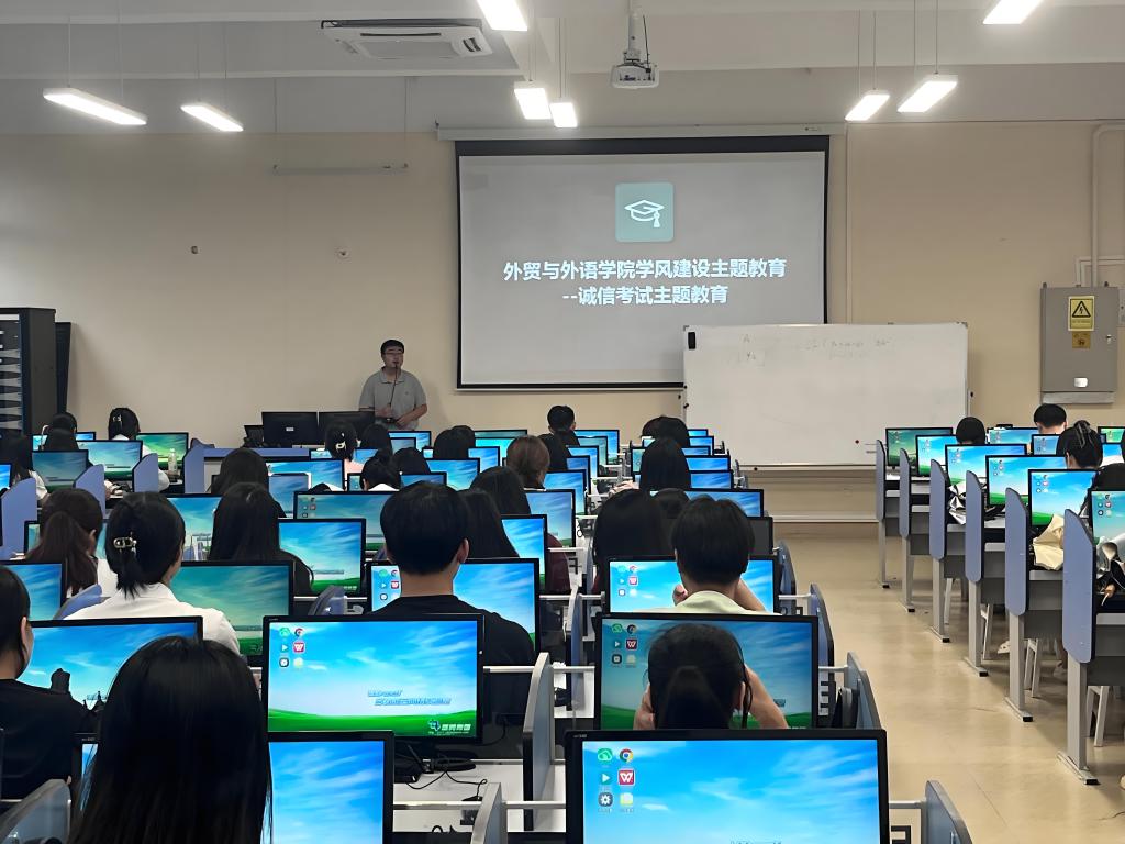 为进一步推动学院学风建设,引导学生树立诚信考试意识,确保学生考试的公平公正,外贸与外语学院于6月27日开展“诚信考试”专题学风建设主题班会,2021级专升本辅导员段宇鑫主持会议,学院党总支书记李刚以及全体2021级专升本学生、各年级学生代表参会。
