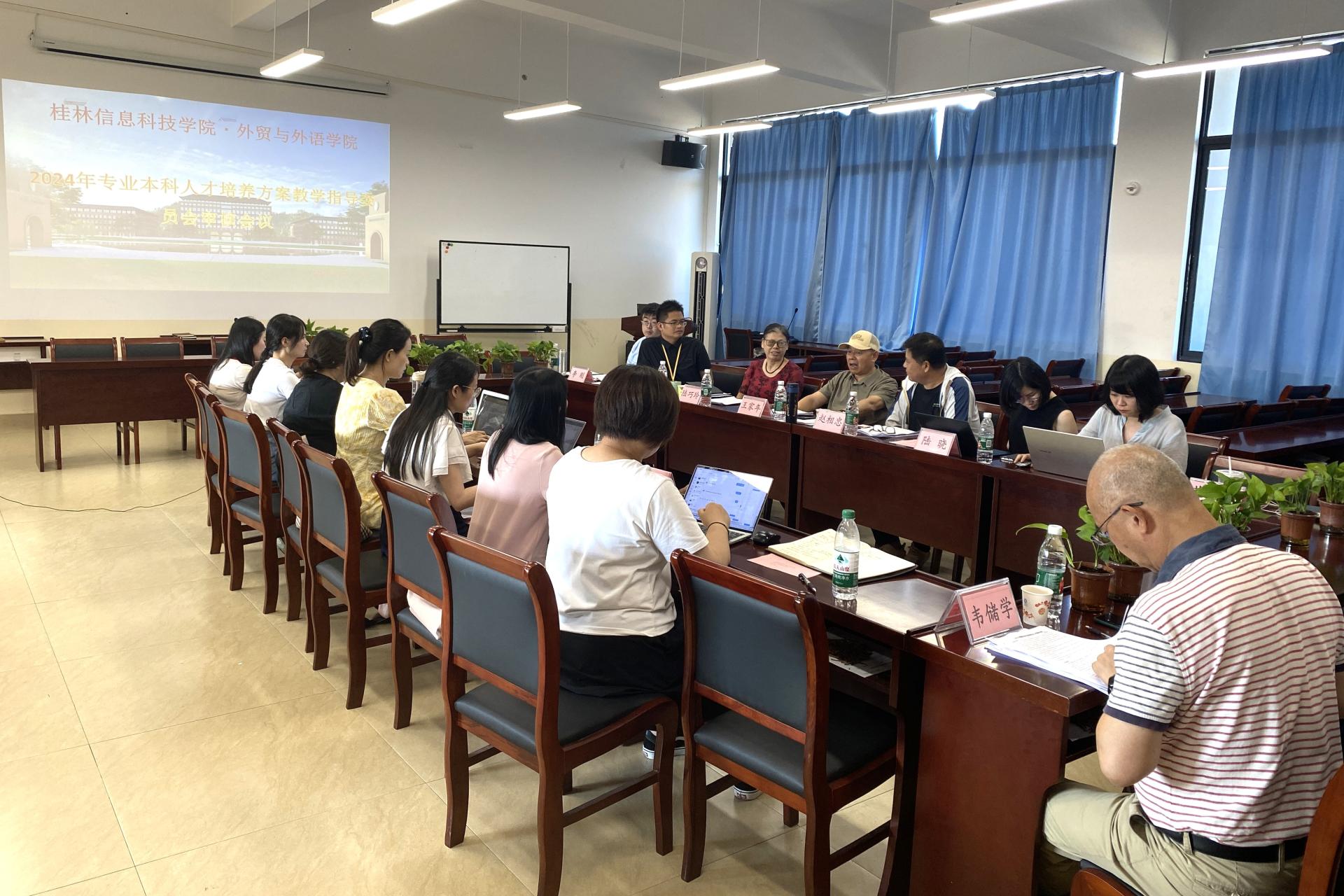 8月26日,外贸与外语学院在学院会议室召开了“2024年专业本科人才培养方案教学指导委员会审核会议”。会议由学院教学指导委员会主任委员韦储学教授主持,全体教指委委员及各专业教研室主任参加了会议。会议旨在深入探讨各专业本科人才培养方案的修订情况并广泛听取专家委员会的宝贵意见,从而进一步提升学院教学质量。会议上,王家年院长强调,人才培养方案的论证工作是专业建设的基石,对于提升教学质量、促进学生全面发展具有重要意义,全体参会人员需高度重视此次会议,确保专业人才培养方案的修订工作能够顺利进行并得到有效落实。