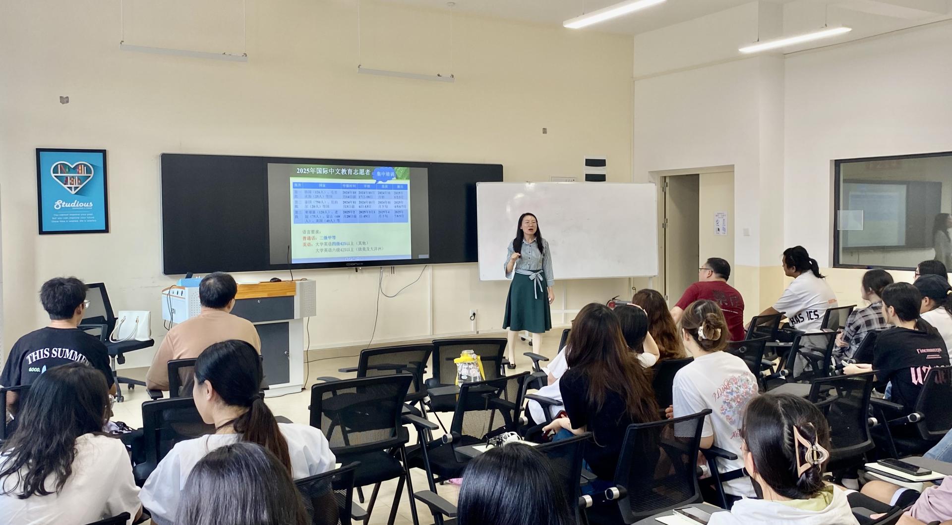 为积极响应国家推动国际中文教育的号召,满足全球中文学习者的需求,10月18日,外贸与外语学院在F213召开2025年国际中文教育志愿者项目说明会。本次会议由英语专业教研室主任王雪利老师主持,外贸与外语学院副院长赖安老师、商务英语教研室副主任闵世琦老师及2021年级英语专业学生参加。