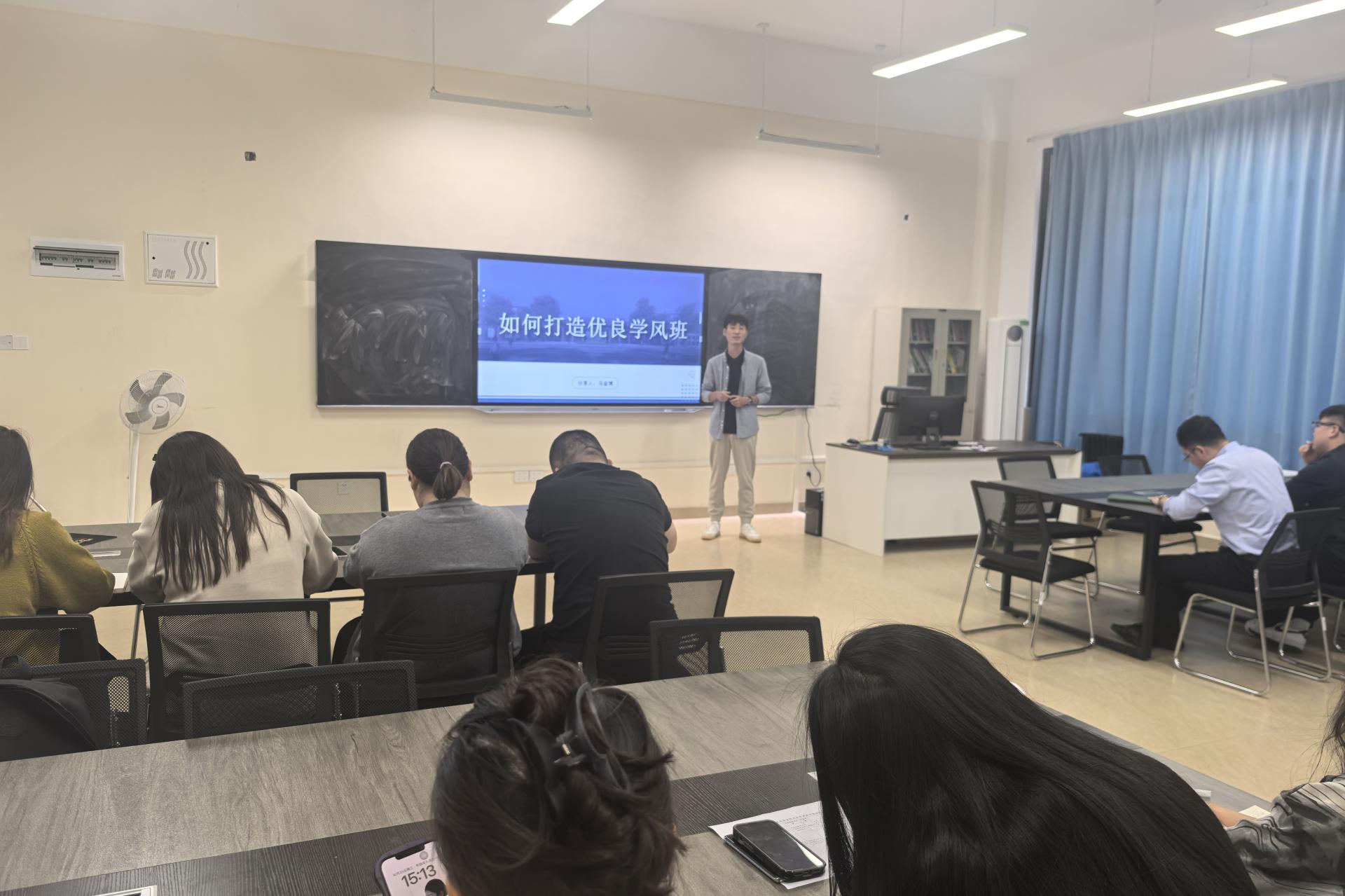 会上,马金博以“优良学风班”建设方案为主线,结合学院学生特点,从班级目标、德育建设、智育建设、体育建设、美育建设、劳育建设、第二课堂和班级建设成效等八个方面详细介绍了学风建设在班级中的具体做法。通过全面分析学校优良学风班评选细则,引导学院全体辅导员以推动学生个人发展和促进班级凝聚力为目标开展工作。学院党委书记许奇在总结中指出,新时代加强大学生学风建设具有重要的现实意义。为扎实开展优良学风建设工作,他提出以下要求:第一,需准确把握学风建设内涵,充分认识学风建设的重要意义;第二,要结合管理与专业两方面,积极加强与专任老师、学业导师沟通,形成育人合力;第三,抓好学生干部队伍,发挥榜样效应,树立大学生榜样意识。让学生骨干成为实现大学生自我教育、自我管理、自我服务的主要力量。