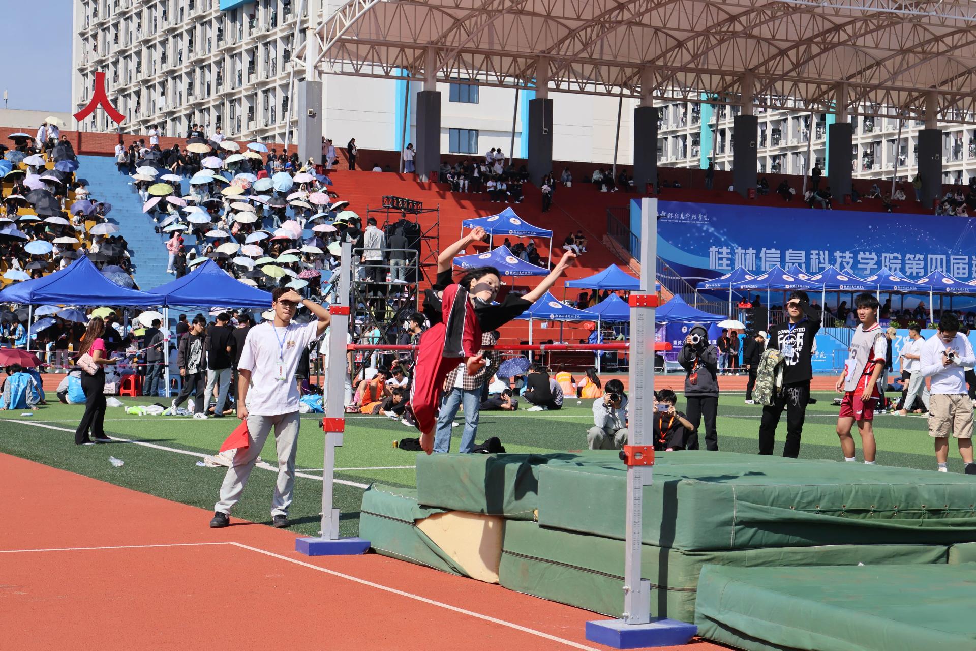 10月26日,beat365官网第四届运动会在体育场隆重举行。在众多激动人心的比赛中,女子跳高比赛尤其引人注目。代表创意设计学院参赛的刘芳香同学以1.30米的优异成绩赢得了女子甲组跳高的冠军,并且打破了学校纪录。这一成绩不仅为她个人带来了荣誉,也为学院增添了光彩。