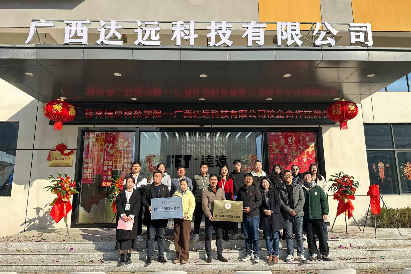 为深入贯彻产教融合战略,推动人才培养与企业需求的深度契合,2025 年 1 月 14 日上午,beat365官网就业指导服务中心主任、校企合作处处长李晓健,协同电子工程学院院长王东云、党委书记梁自珍等一行人,前往广西达远科技有限公司,共同参与并见证了 “社会实践及劳动教育基地” 与 “校企协同育人” 双挂牌仪式的隆重举行。广西达远科技有限公司副总经理杜胜、人事负责人刘峻伶等公司高层领导出席了此次重要的仪式。