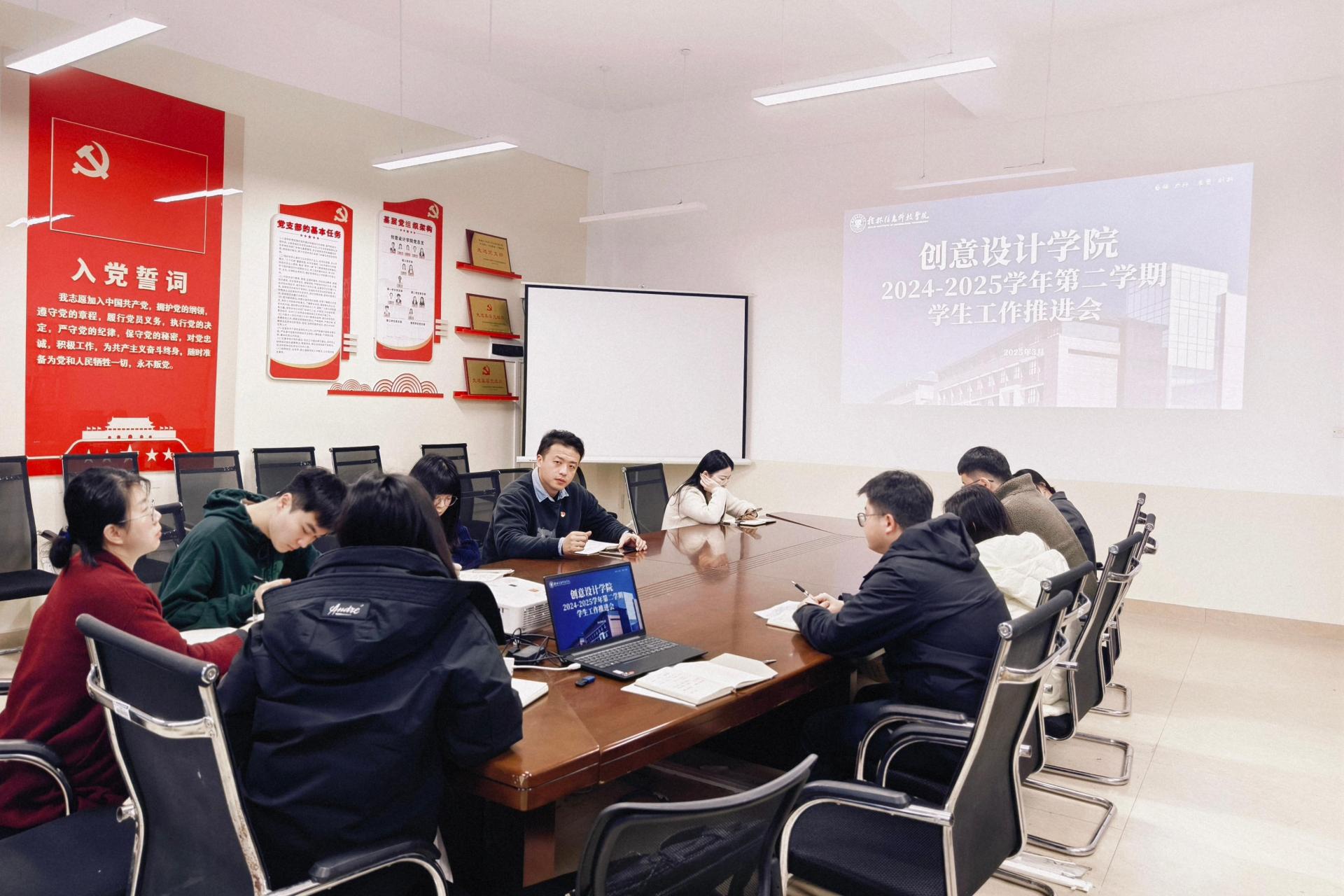 为全面部署近期学生工作,进一步强化校园安全管理,2月28日,创意设计学院在德远楼E504成功召开2024-2025学年第二学期学生工作推进会。本次会议由学院党总支书记范恒祯主持,全体辅导员共同参与。