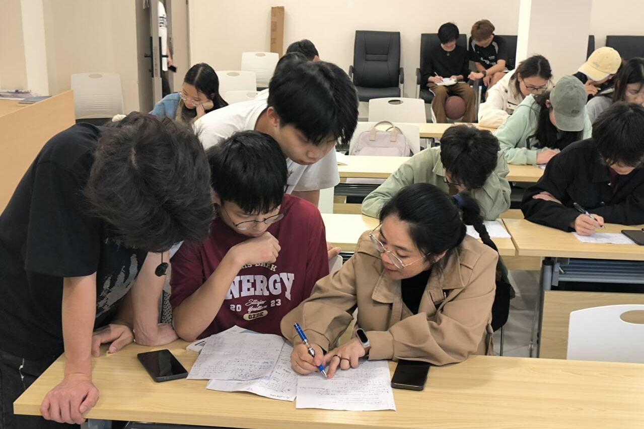 在为期四天的系统辅导中,基础教研部的老师通过“知识图谱构建+典型例题精讲+解题策略传授”三维一体的教学模式,重点突破矩阵运算、特征值与特征向量、二次型标准化等核心章节的重难点。活动现场学习氛围浓厚,学生携带教材、习题集及个人整理的错题本积极参与。在互动答疑环节,师生就“线性方程组解的结构分析” 、“矩阵对角化条件判定”等专题展开深度研讨。