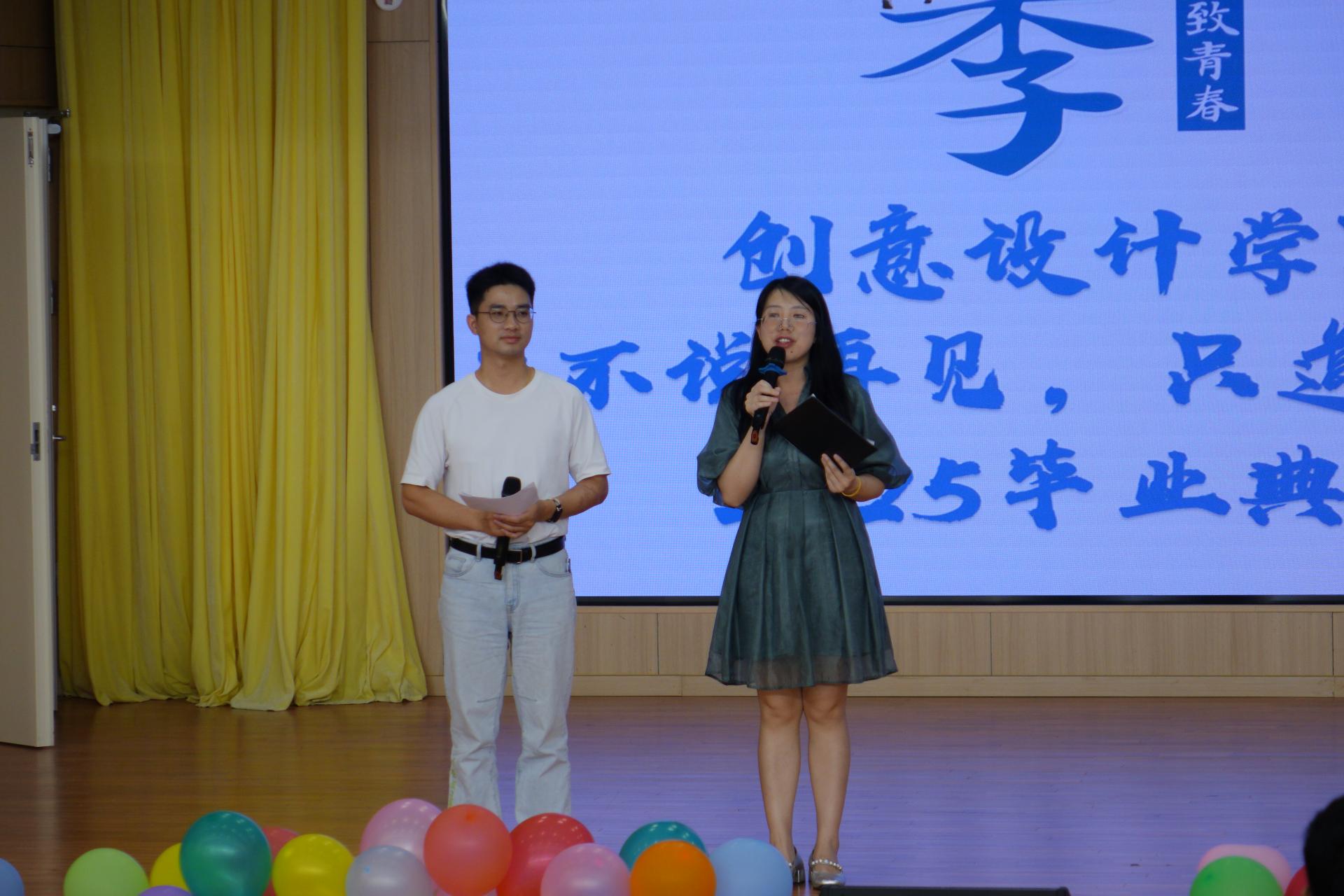 6月7日下午,beat365在线唯一官网创意设计学院2025届“不说再见,只道远方”毕业典礼在F107报告厅温情举行。典礼以青春回忆与未来展望为主线,通过歌舞、短片、互动等形式,为毕业生打造了一场充满仪式感的告别仪式。