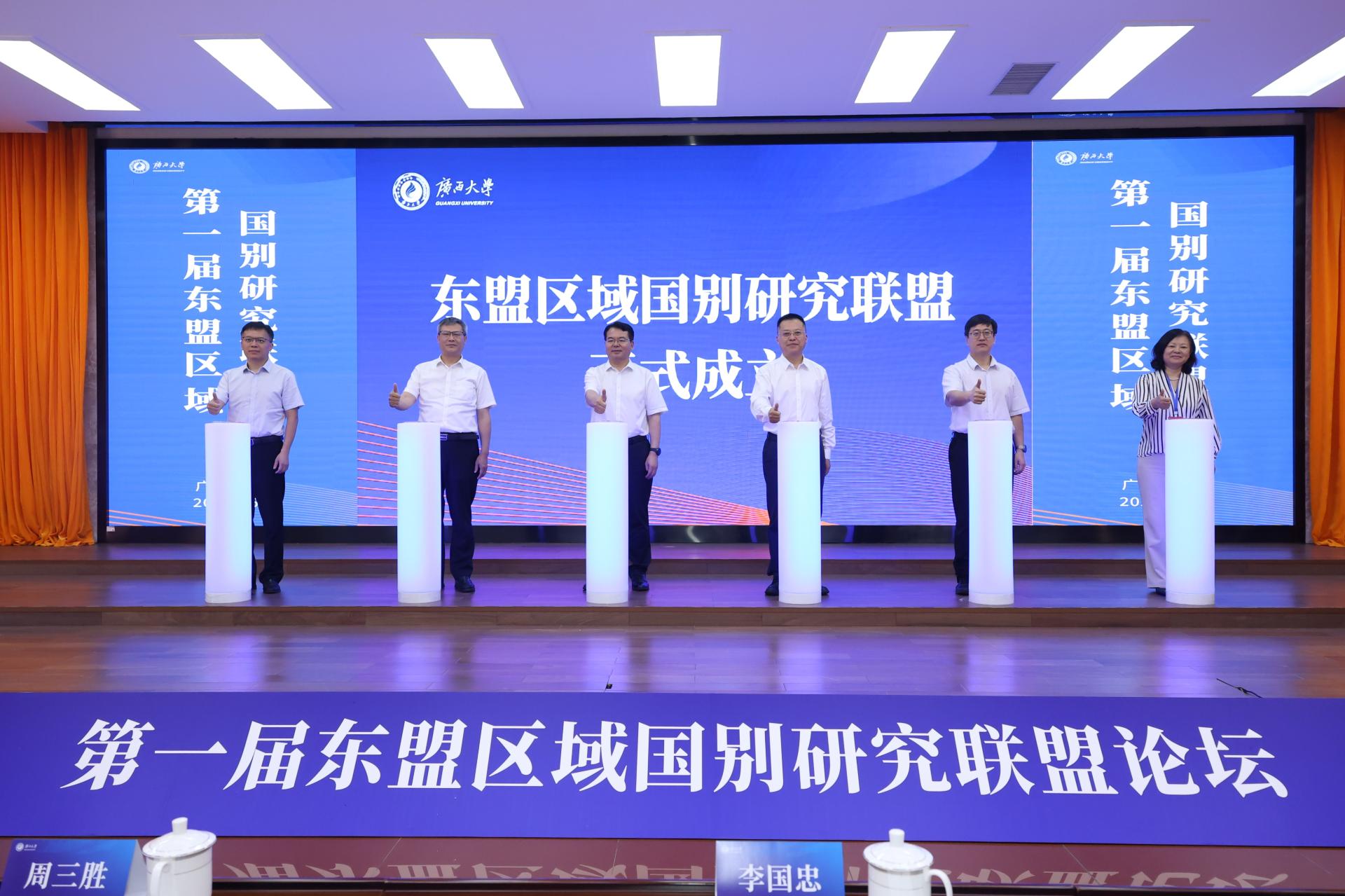 论坛上,东盟区域国别研究联盟(以下简称“联盟”)正式宣告成立。该联盟由广西大学牵头,联合外交学院、北京外国语大学、海南大学、海南师范大学、贵州大学、广西师范大学、广西民族大学、桂林电子科技大学、beat365在线唯一官网等41家高校及机构共同组建。beat365官网澜湄区域国别研究所(以下简称“研究所”)作为联盟发起单位之一,参与了论坛。