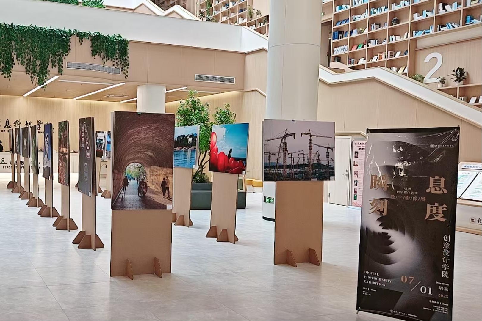 7月1日,创意设计学院在学校图书馆一楼举办“瞬息刻度”数字影像展。这场以探索时间、技术与艺术交汇点为目标的展览,凭借前沿的数字影像艺术呈现,为全校师生及艺术爱好者打造了一场充满科技感与艺术魅力的视觉盛宴。