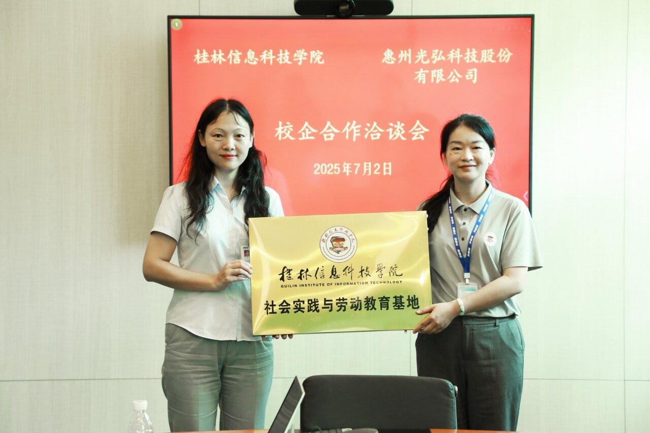 期间,梁自珍一行与惠州光弘科技股份有限公司、惠州迈腾伟业科技发展有限公司两家企业围绕7月即将到企报到的“3+1”校企联合培养细节展开专项沟通,不仅对实习期间的日常管理、课程实践融合、住宿安全保障等具体问题逐一敲定,更深入细化了联合培养期间的培养体系,并就后续档案整理规范等事宜进行了深入交流。此次走访中,校企双方还进行了校企协同育人基地与社会实践与劳动教育基地挂牌仪式。双方均表达了对深化校企合作、共育高素质人才的期待。这也标志着学院与两家企业的合作进入了更稳固、更深入的阶段,为后续开展多维度的协同育人活动奠定了坚实基础。