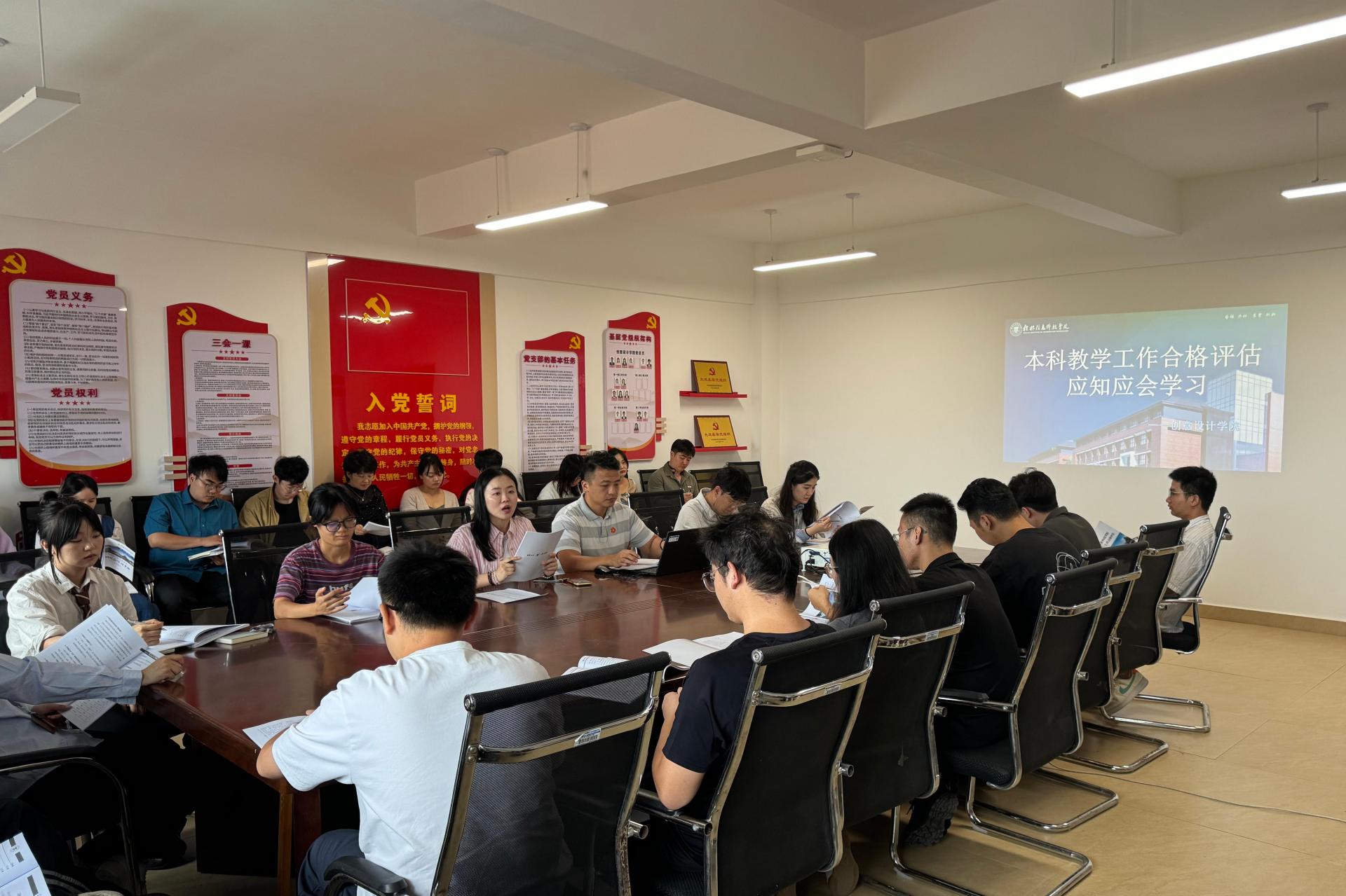为切实加强青年教师对本科教学工作合格评估的认知与理解,助力教师快速融入学校迎评工作,9月26日,创意设计学院在守正楼G517组织青年教师开展《本科教学工作合格评估应知应会学习手册》学习会。本次学习会由学院范恒祯书记主持,全体青年教师参与。