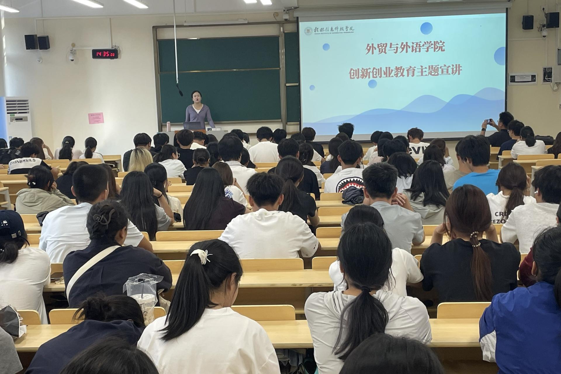 为深化创新创业教育改革,激发2025级新生创新活力与创业热情,10月17日下午,外贸与外语学院在D206教室召开“新生创新创业教育第一课”。副院长赖安老师、实践教研室主任农方老师及2025级全体新生共话“双创”。