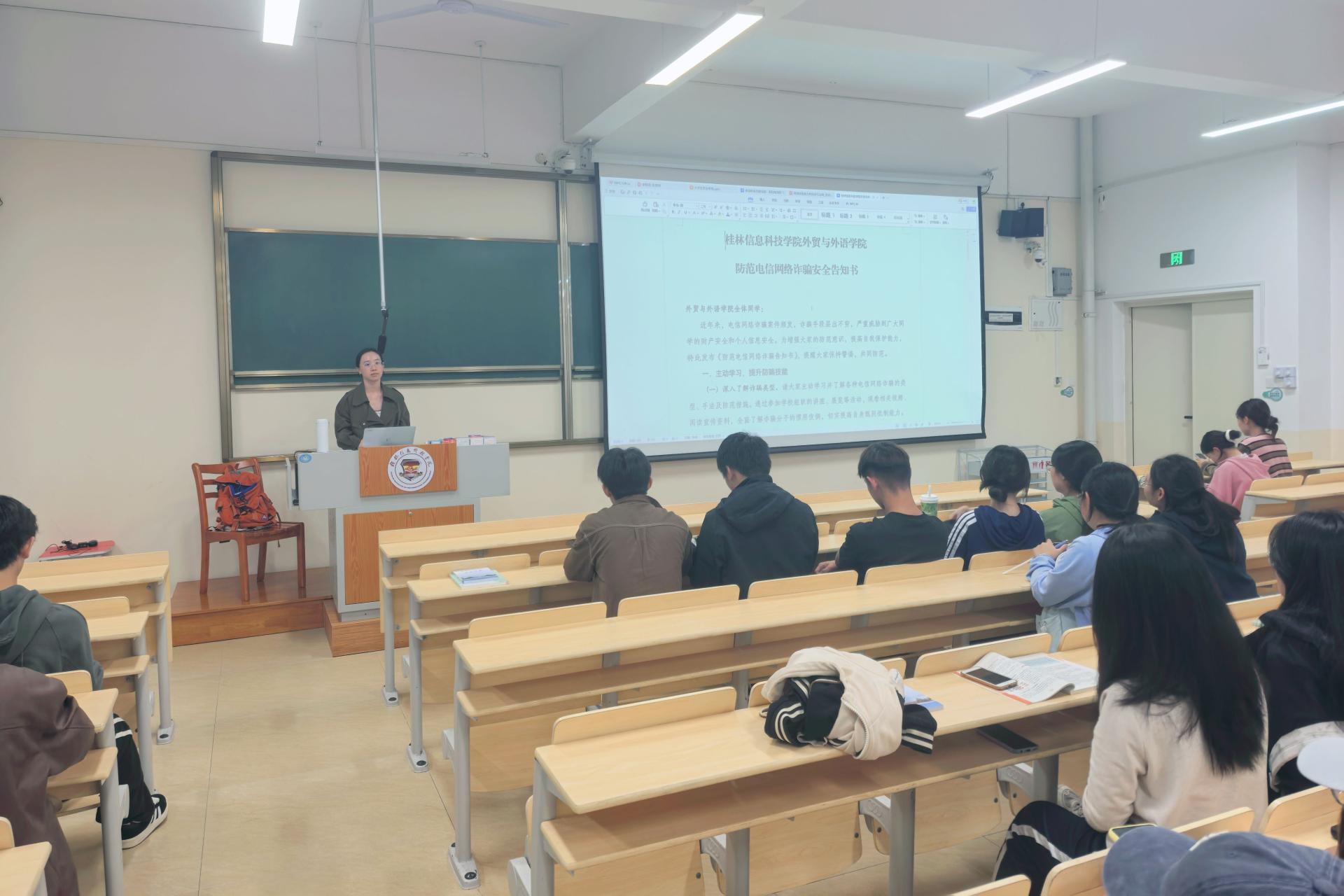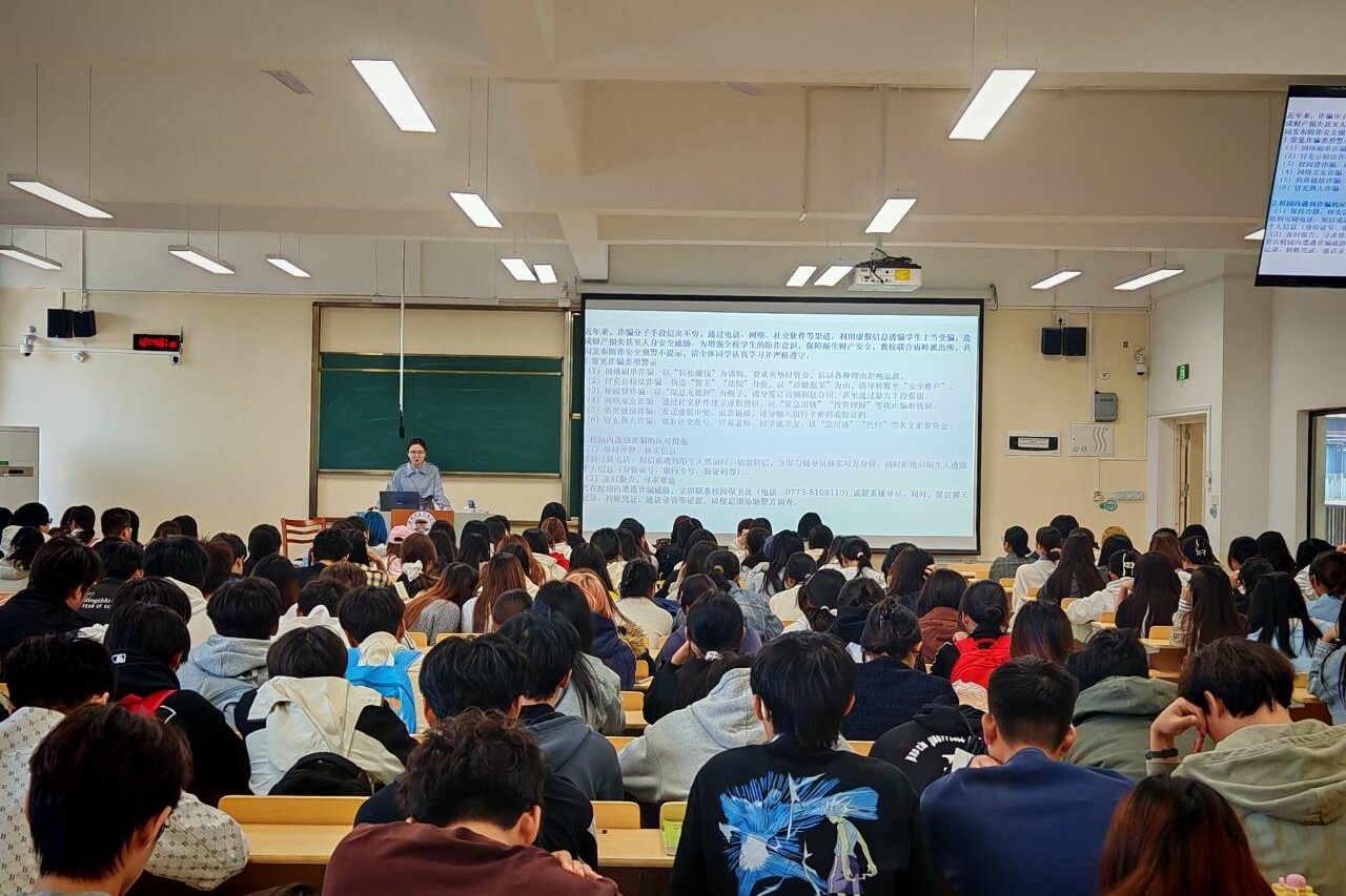 系列活动以主题班会为核心抓手。10月20日至30日,各年级各班级在教室集中开展反诈主题班会,由各辅导员策划并主持。班会聚焦中奖诈骗、游戏装备虚假交易、刷单返利、冒充评估人员等校园高发骗局,辅导员结合庙岭派出所及学校提供的真实案例,深入剖析诈骗套路,并借助多媒体播放反诈警示短片,现场演示陌生链接识别、可疑来电核实、个人信息保护等实用技巧。互动环节中,辅导员针对 “如何辨别虚假兼职信息”“收到可疑转账要求该怎么办” 等问题逐一解答,引导学生牢记 “三不一多”口诀,熟练掌握防骗要点。