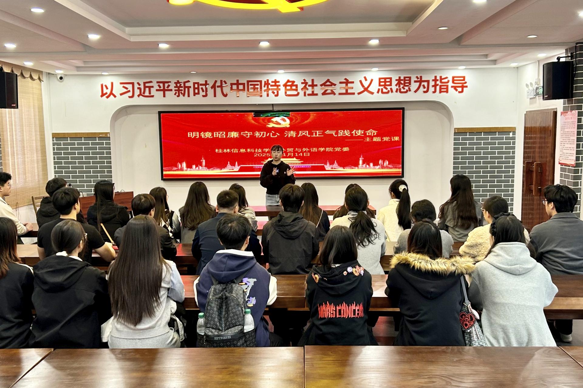 为深入推进新时代廉洁文化建设,切实强化学院师生党员廉洁自律意识,筑牢拒腐防变的思想道德防线,11月14日,外贸与外语学院党委书记廖星男以“明镜昭廉守初心 清风正气践使命”为主题,为全院师生党员讲授了一堂内涵深刻的专题党课。