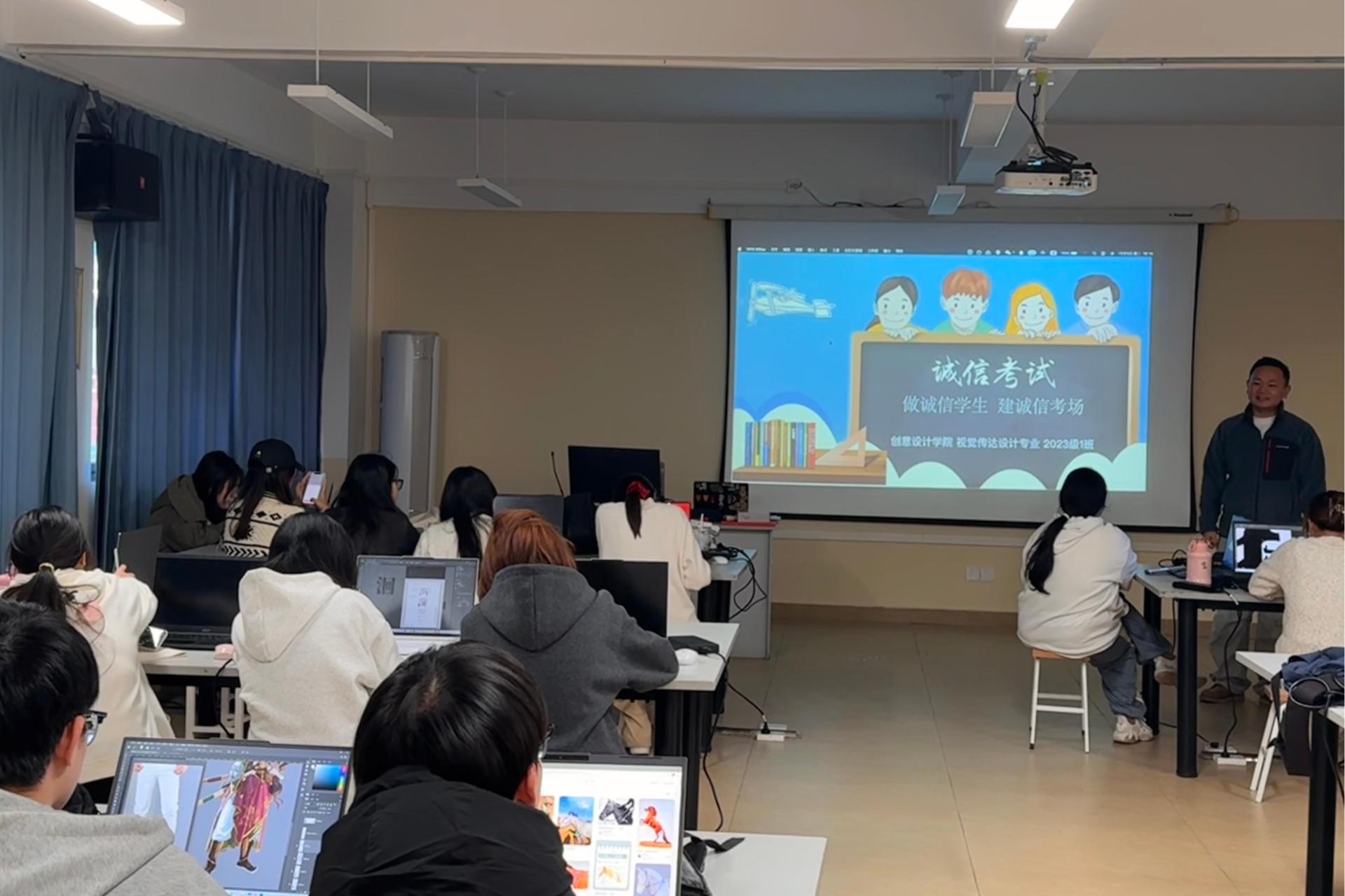 为进一步强化学生诚信应试意识,筑牢考试纪律防线,确保近期各项考试工作平稳有序推进,近日,创意设计学院组织各班级集中开展“诚信应考”主题班会。本次活动覆盖全体备考学生,将诚信教育与考前动员紧密结合,为即将到来的全国大学生英语四、六级考试及B级考试和期末考试筑牢思想根基。