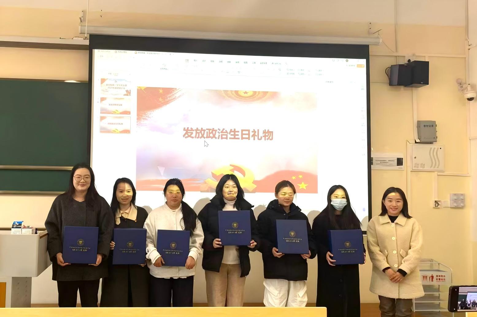 活动中,各支部书记为党员送上“政治生日礼包”。其中,党员学习笔记本寓意记录初心轨迹与成长思考,签字笔象征以笔墨践行使命担当,雨伞寄托为师生群众遮风挡雨的服务情怀,充电器则提醒党员常学常新、永葆先进。这份承载组织关怀的礼物,既传递了党组织的温暖,也寄托了对党员的殷切期望。