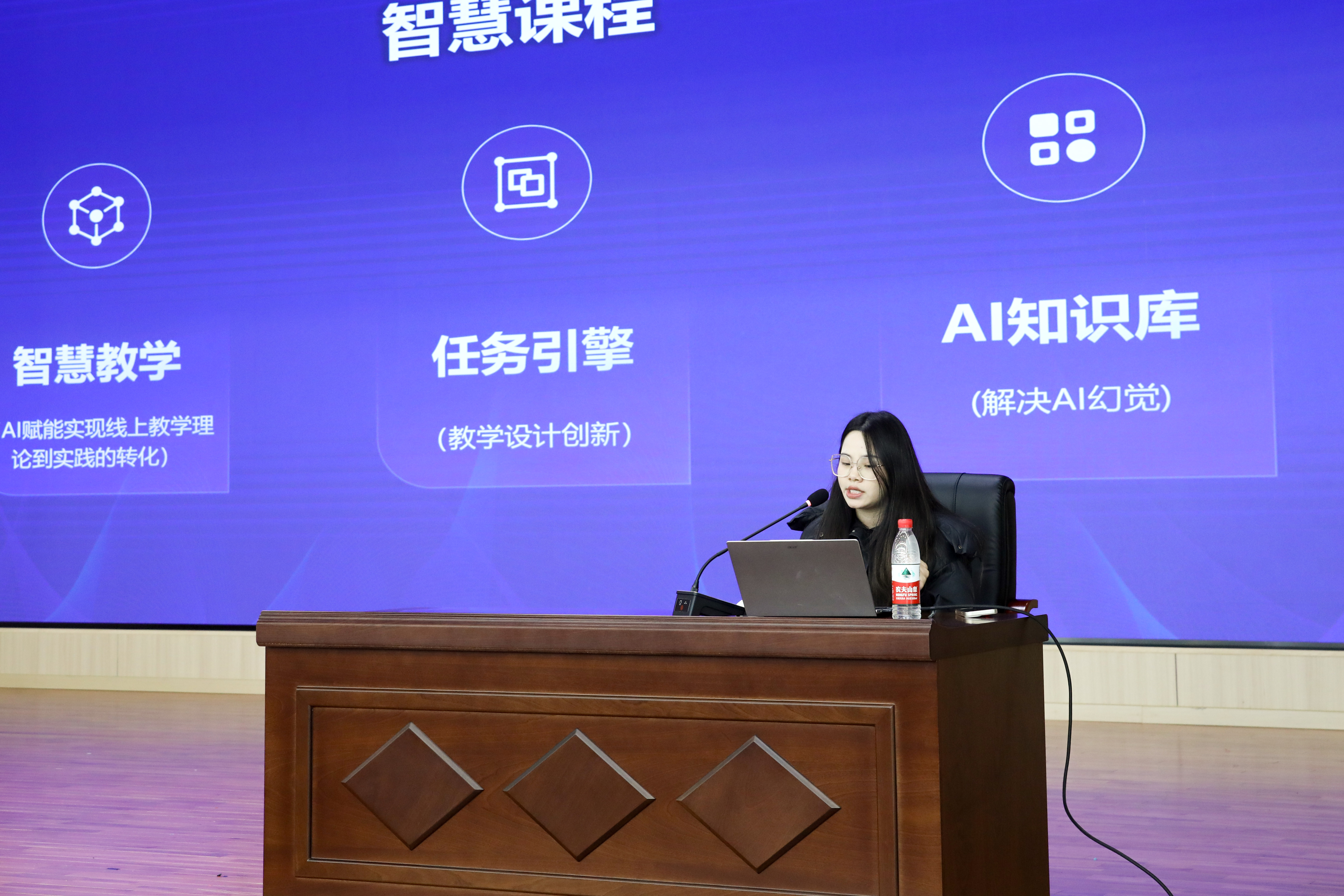 林贞烈老师长期专注于智慧教学支持与服务,并协助广西壮族自治区内30余所学校完成课程建设与平台运行服务,在智慧教学平台应用与课程数字化建设方面具有丰富经验。培训中,林老师围绕超星智慧课程平台的核心功能、智慧慕课建设、教学设计创新、AI知识库等方面展开系统讲解,通过具体案例展示了智慧课程平台在教学过程中的实际应用与成效。