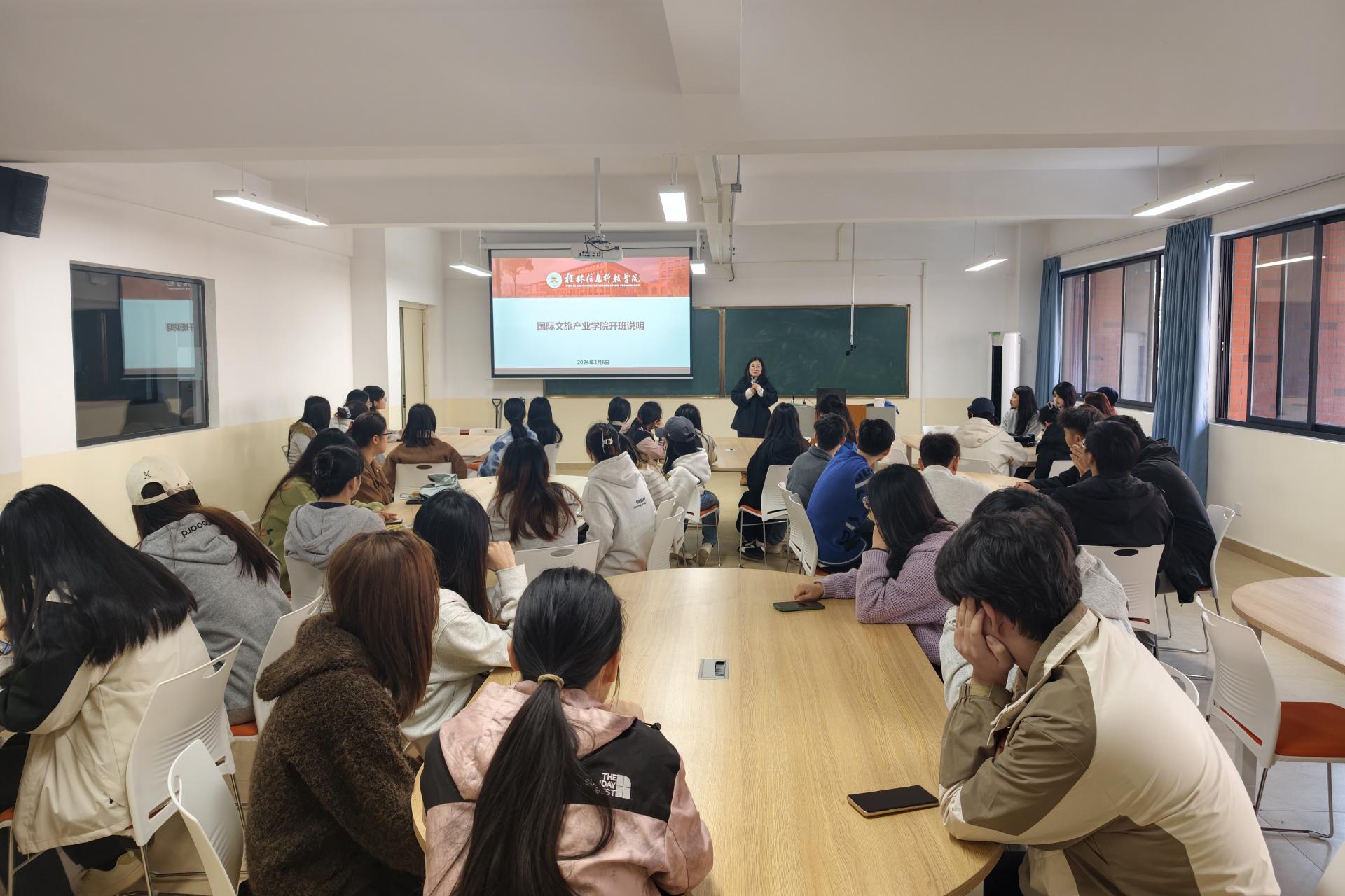 3月6日,为帮助国际文旅产业学院学生全面了解本学期课程要求、文旅行业现状、现有企业资源等,酒店管理教研室主任兼国际文旅产业学院项目负责人黄艳老师向2023级参与产业学院学习的全体学生召开项目第一次沟通会。