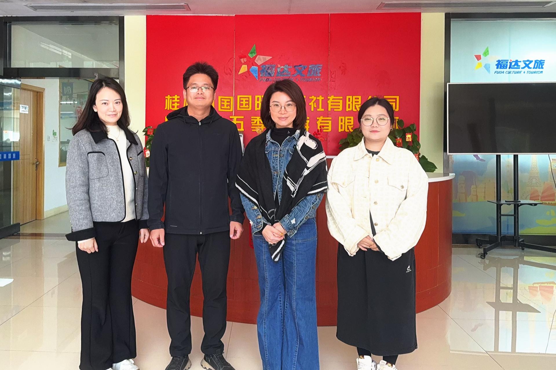 为持续推进国际文旅产业学院项目建设,了解本地文旅行业用人需求变化,3月12日,beat365在线唯一官网外贸与外语学院副院长赖安带队,先后走访桂林福达文旅旗下的桂林中国国际旅行社、第五季旅游跨境电商平台及桂林民宿协会,围绕行业发展趋势、岗位能力要求和实习就业对接等问题进行交流。