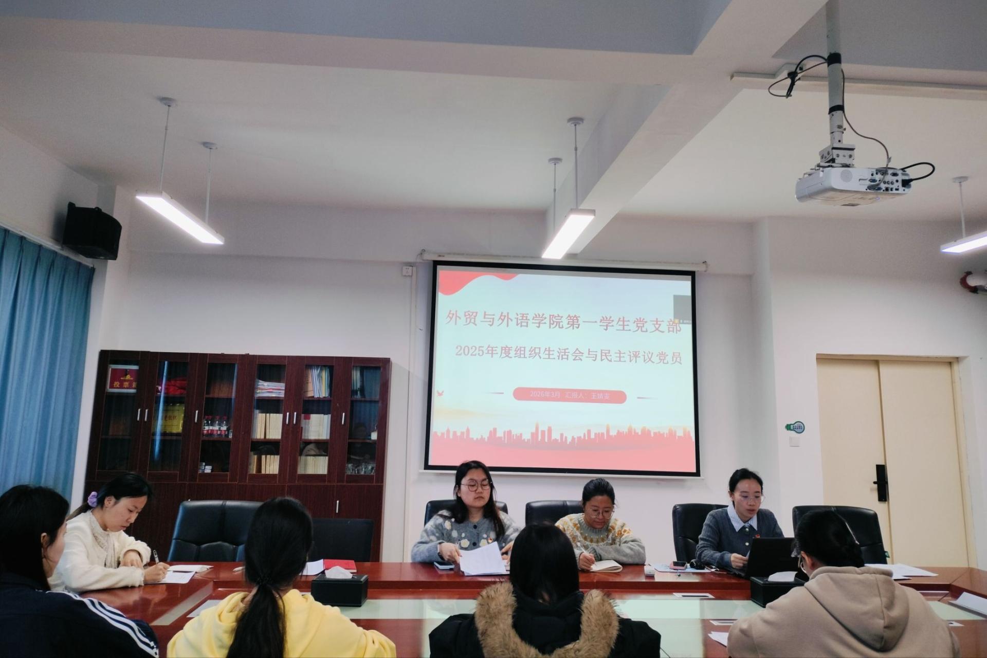 外贸与外语学院第一学生党支部会议现场