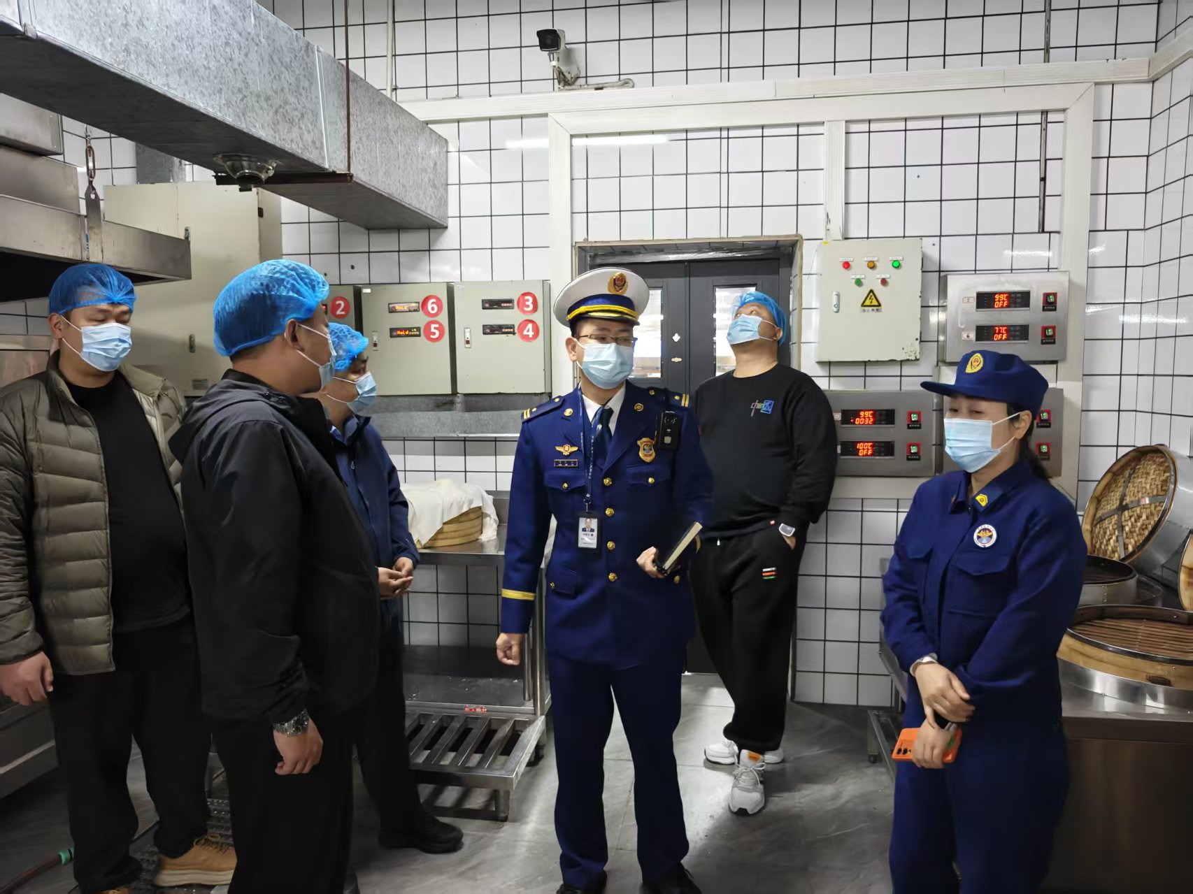 在食堂区域,检查组深入后厨操作间、食品仓储区,对消防通道是否保持畅通、应急照明和疏散指示标志是否完好有效进行了逐一核验。检查人员还仔细查阅了灭火器、消火栓的日常巡检记录,并现场测试了厨房灭火设备的运行状况,确保在突发紧急情况下,各项安全设施设备能正常运转。